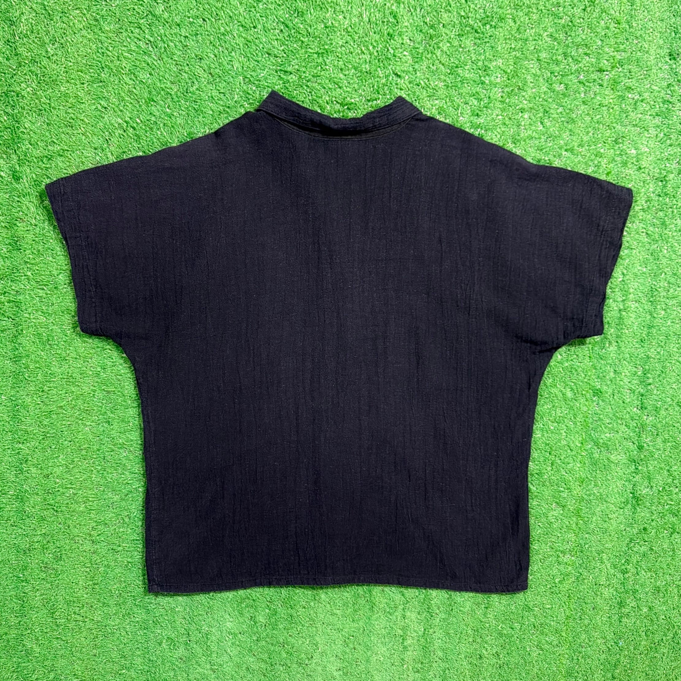柔らかく、ガーゼのような軽い素材感が特徴で、さらっとした着心地が魅力の一着。