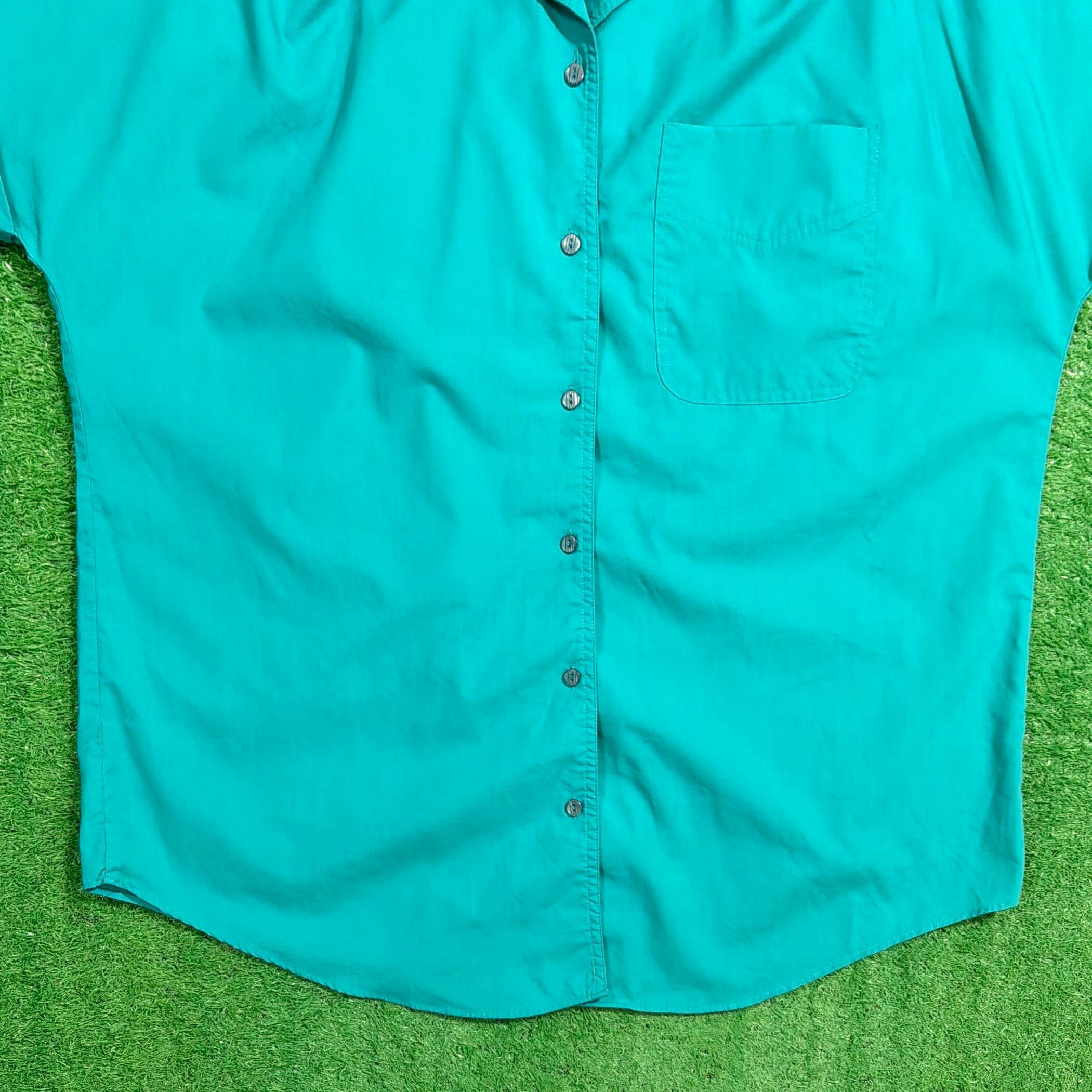 鮮やかなグリーンカラーが印象的で、シンプルながらも目を引く一着。