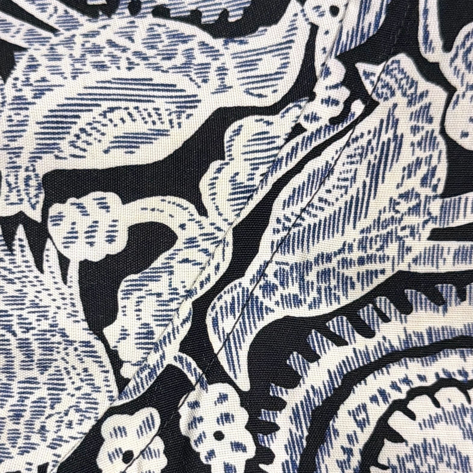 ブラック×ホワイトのモノトーンでまとめられたペイズリー柄が印象的な一着。