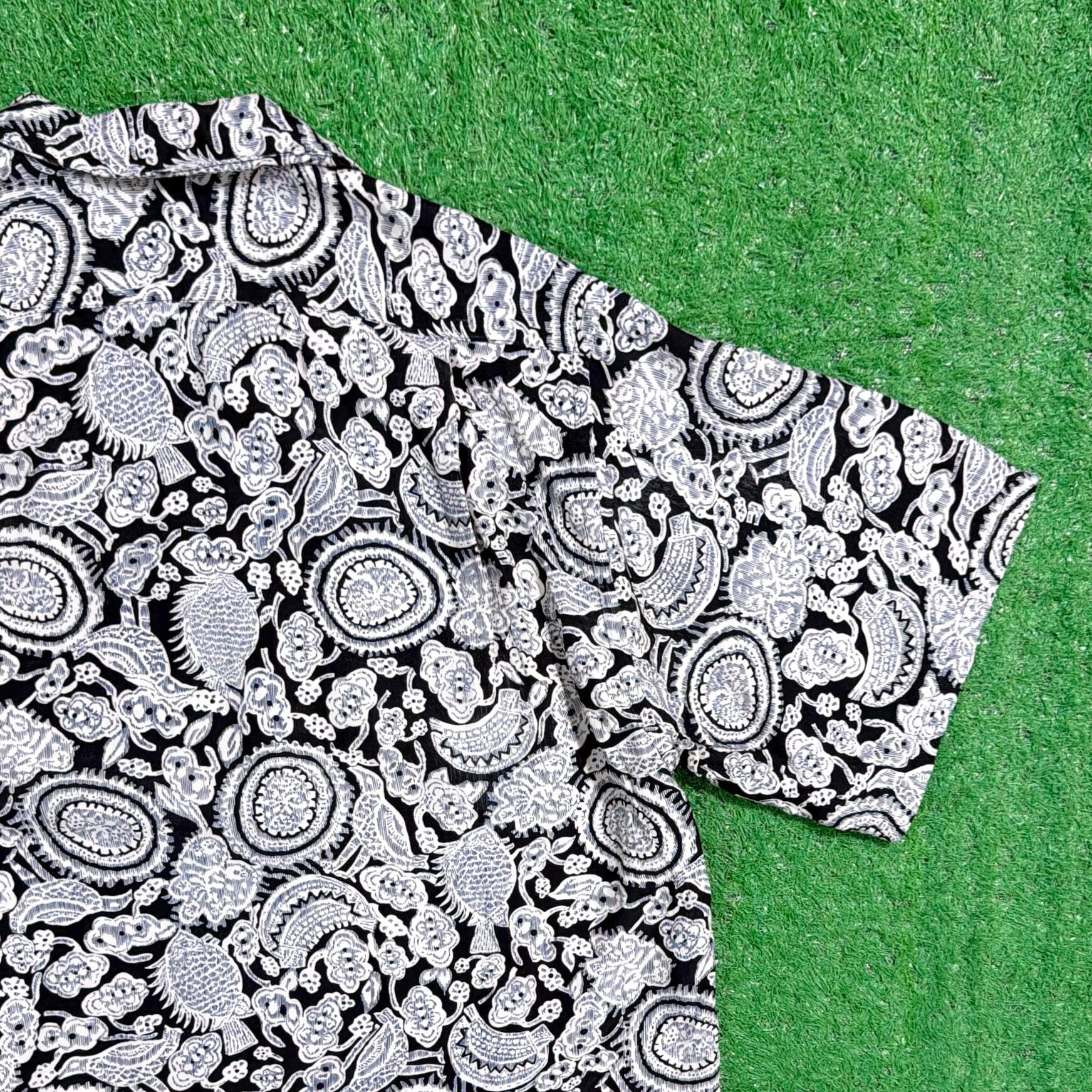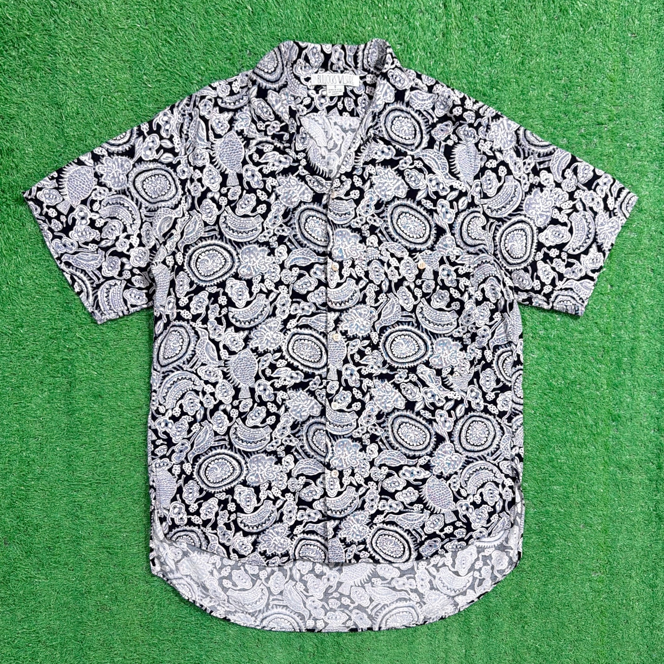【Men's】 90s ペイズリー 総柄 レーヨン 開襟シャツ / アメリカ製 USA製 90年代 古着 シャツ 開襟 柄シャツ メンズ モノトーン N0860