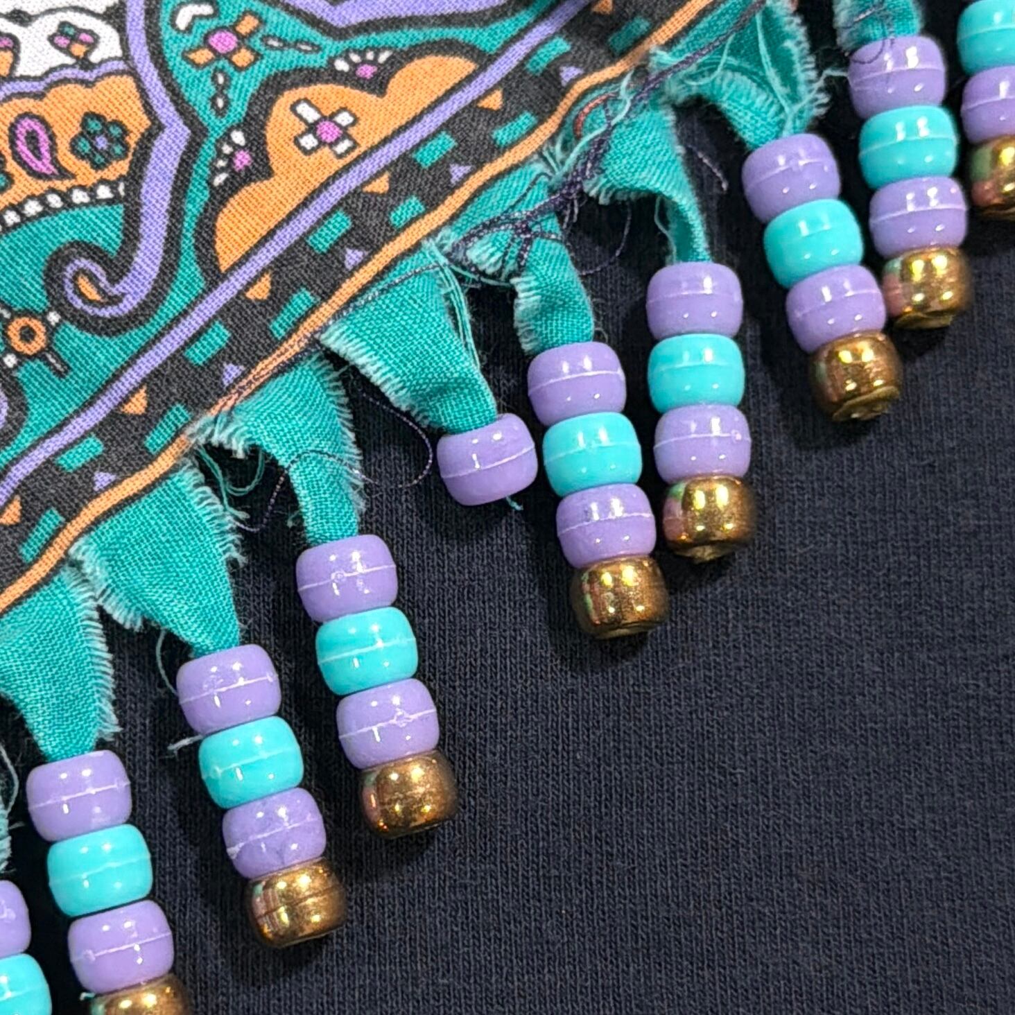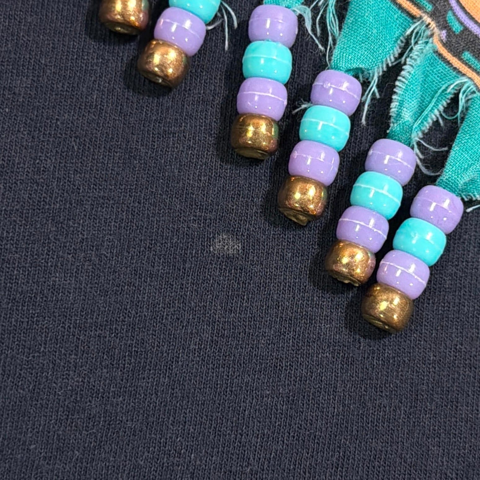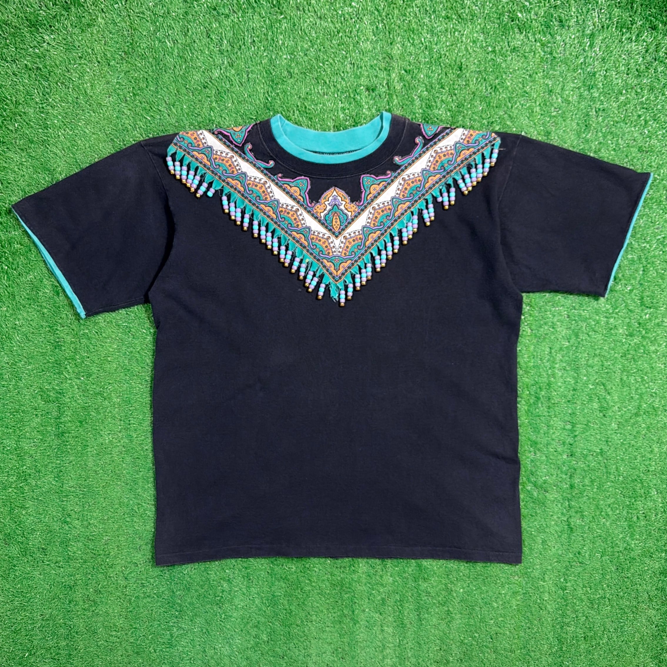 【Unisex】 90s ネイティブデザイン フリンジ付き フェイクレイヤード Tシャツ / アメリカ製 USA製 90年代 古着 ティーシャツ T-Shirt トップス メンズ レディース ウエスタン 1774
