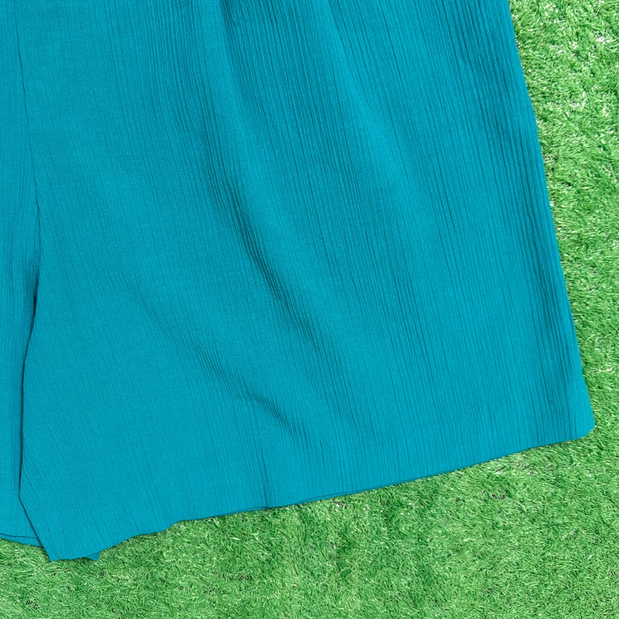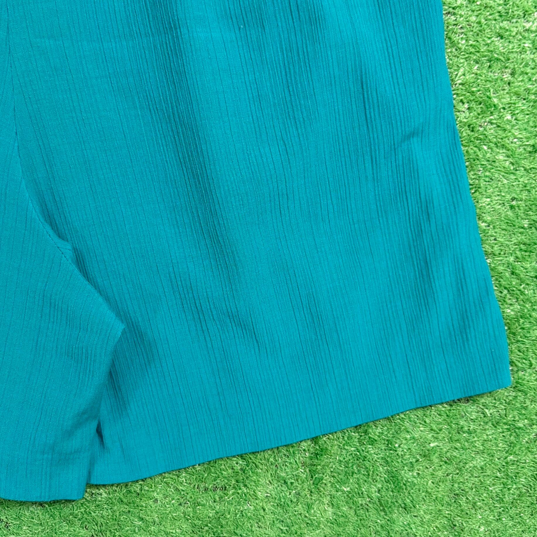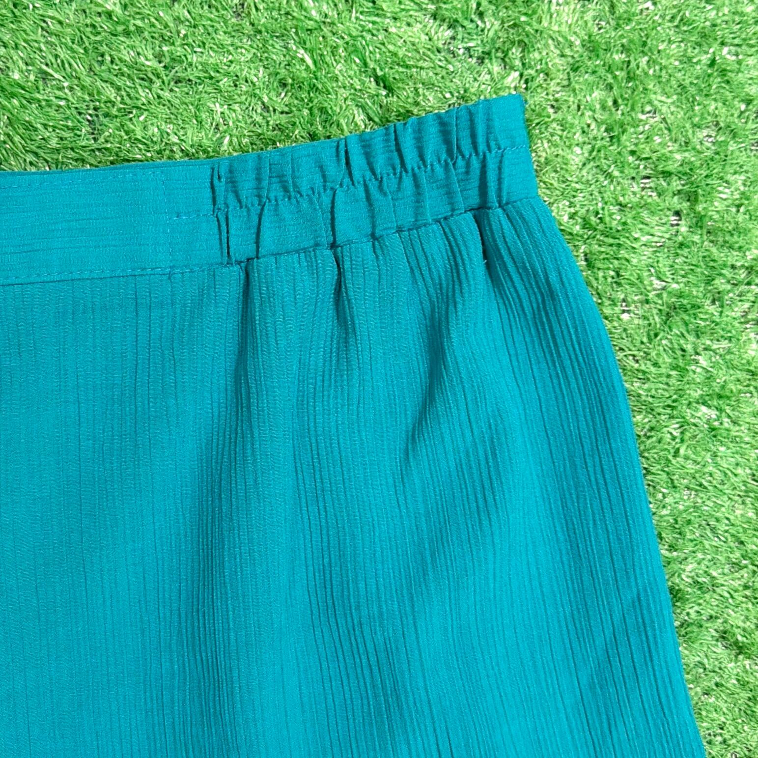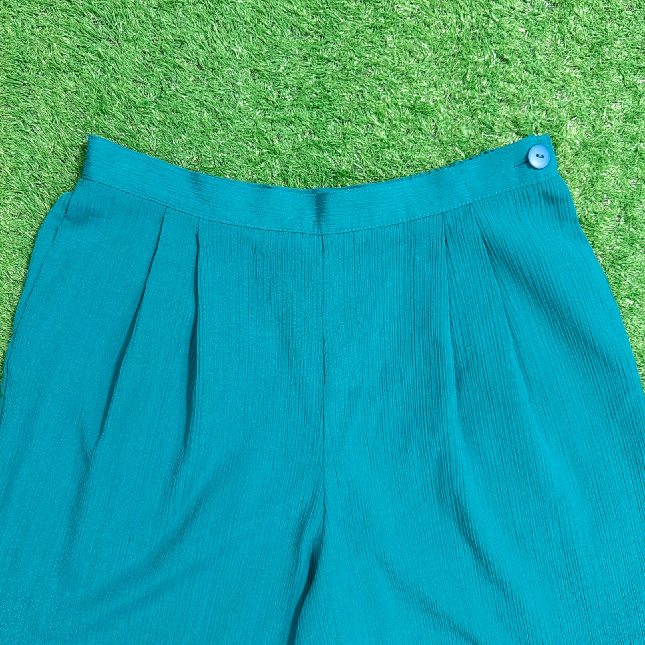 鮮やかなグリーン系カラーが目を引く一枚で、シンプルながらスタイリングのアクセントになるアイテム。フロントにはタックが入り、程よく立体感のあるシルエットに仕上がっています。
