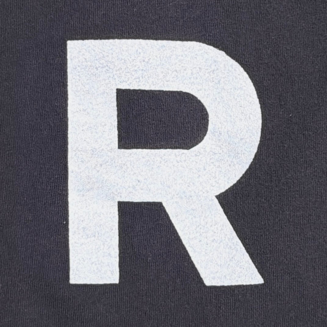 ブラックボディにホワイトの切り替えデザインが効いた1枚で、フロントの「R」プリントが印象的な仕上がり。シンプルながらもデザイン性があり、スタイリングのアクセントになります。