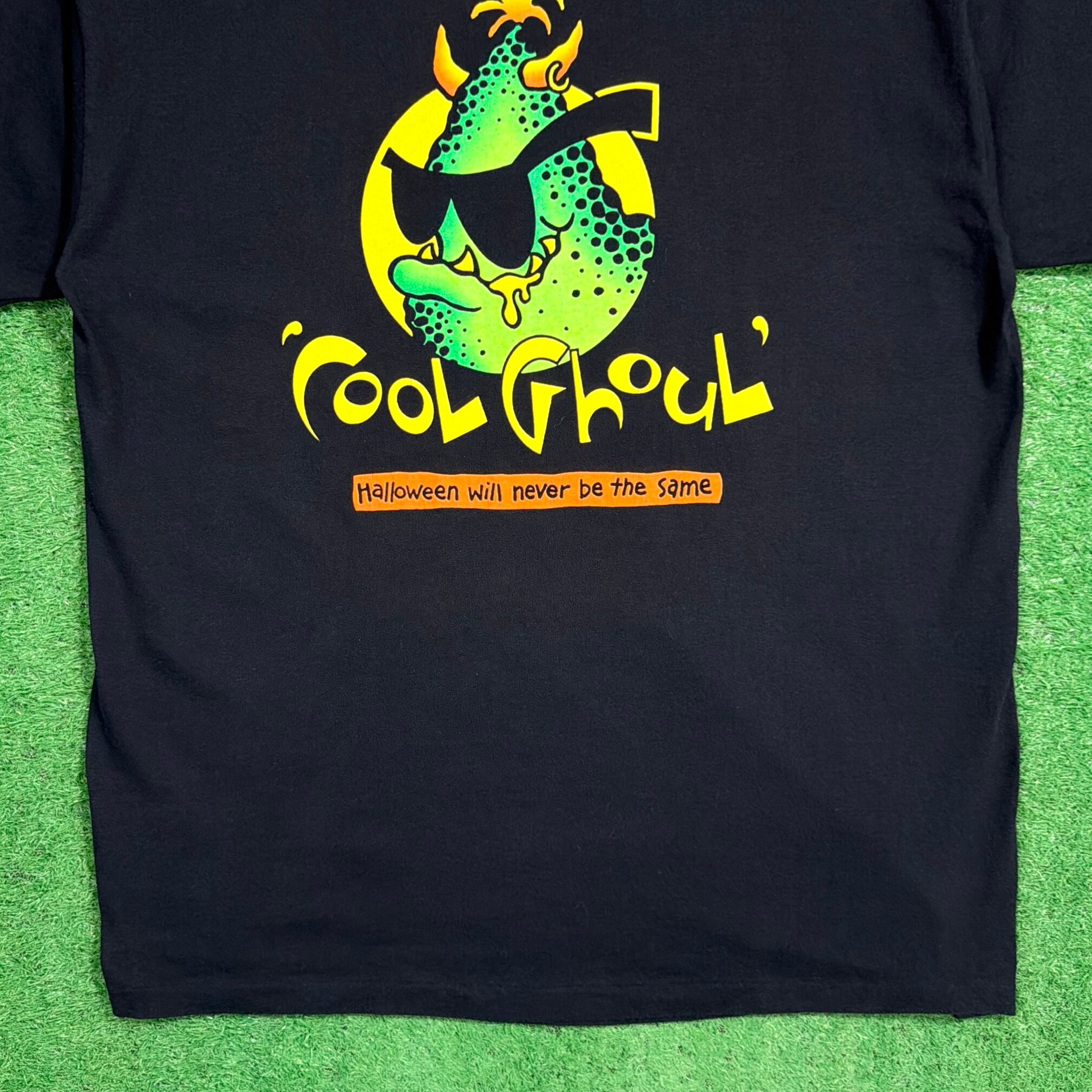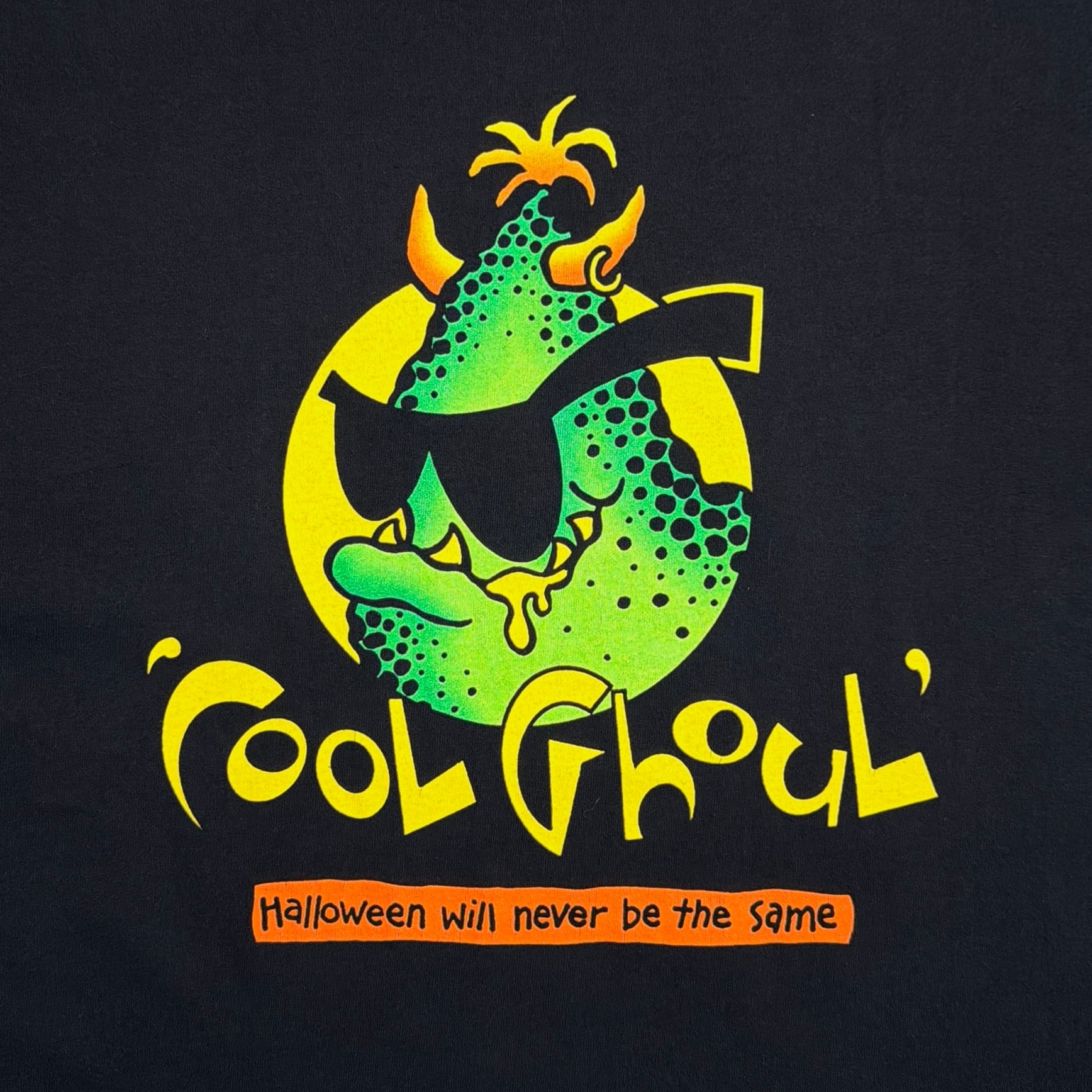 「Cool Ghoul」は直訳すると「クールなモンスター/かっこいいおばけ」といった意味で、90年代らしいユーモアやグラフィック感覚が感じられる表現。特定の有名キャラクターではなく、当時のグラフィックデザインとして楽しめるアイテムです。