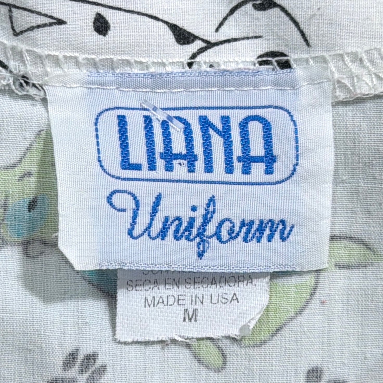 アメリカ製の犬や猫のイラストが総柄でプリントされたスクラブシャツです。