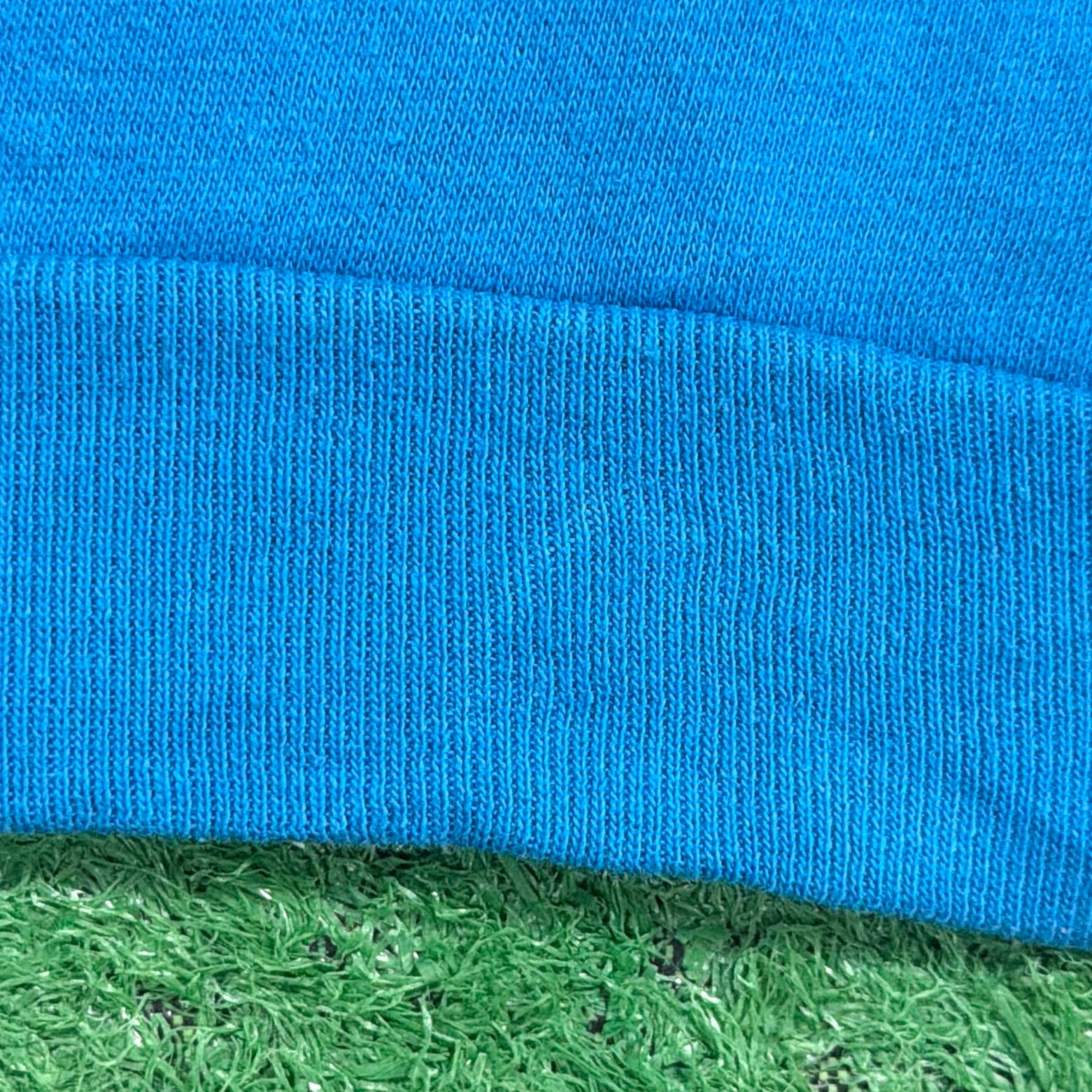 鮮やかなブルーカラーが印象的な一枚で、シンプルながらもスタイリングのアクセントになるアイテム。無地ならではの使いやすさと、ヴィンテージらしい雰囲気を兼ね備えています。