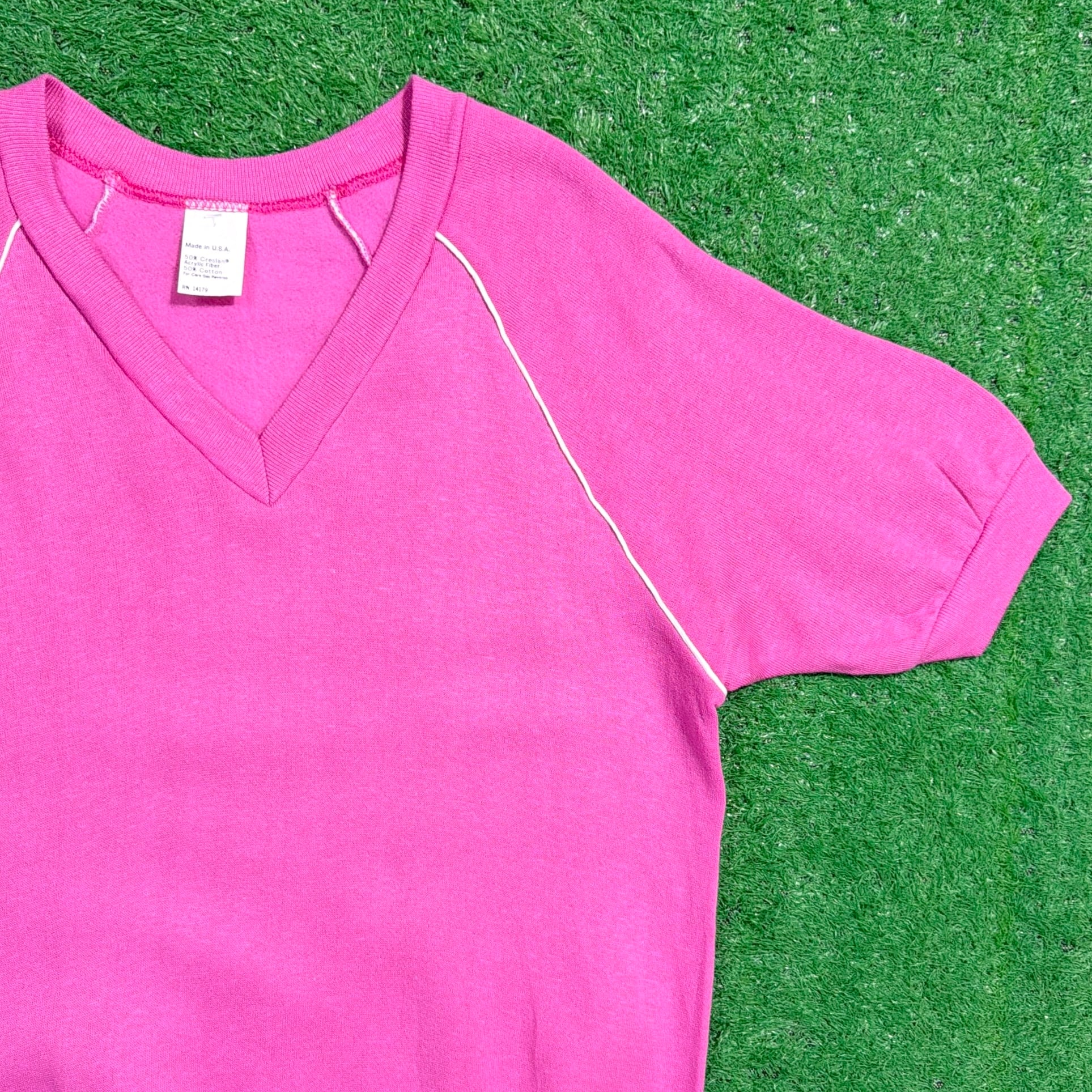 【Men's】 70s - 80s Vネック 半袖 スウェットシャツ / アメリカ製 USA製 70年代 80年代 スウェット トップス 古着 N0924