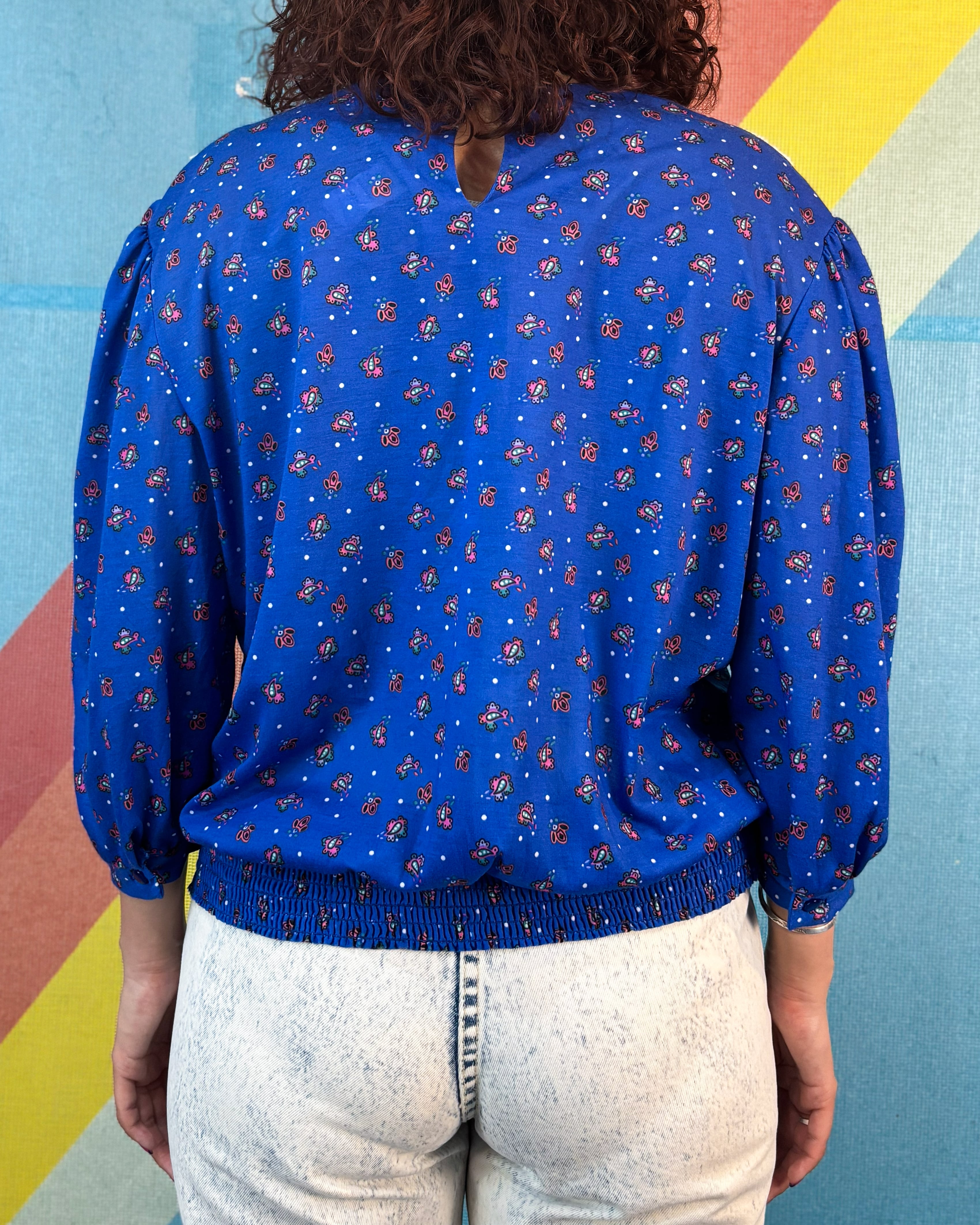 1980年代のアメリカ製、レースカラー付きの総柄ブラウスです。