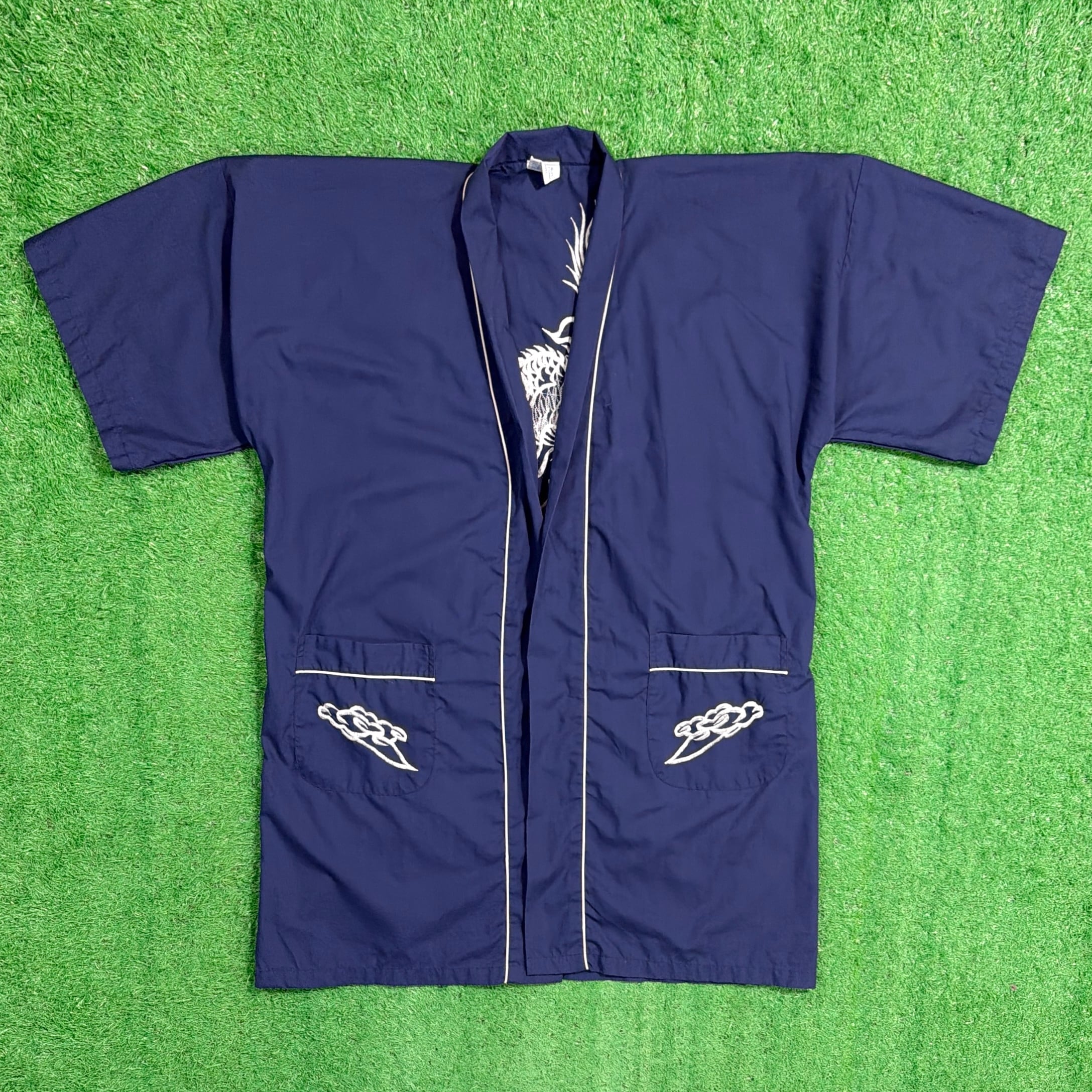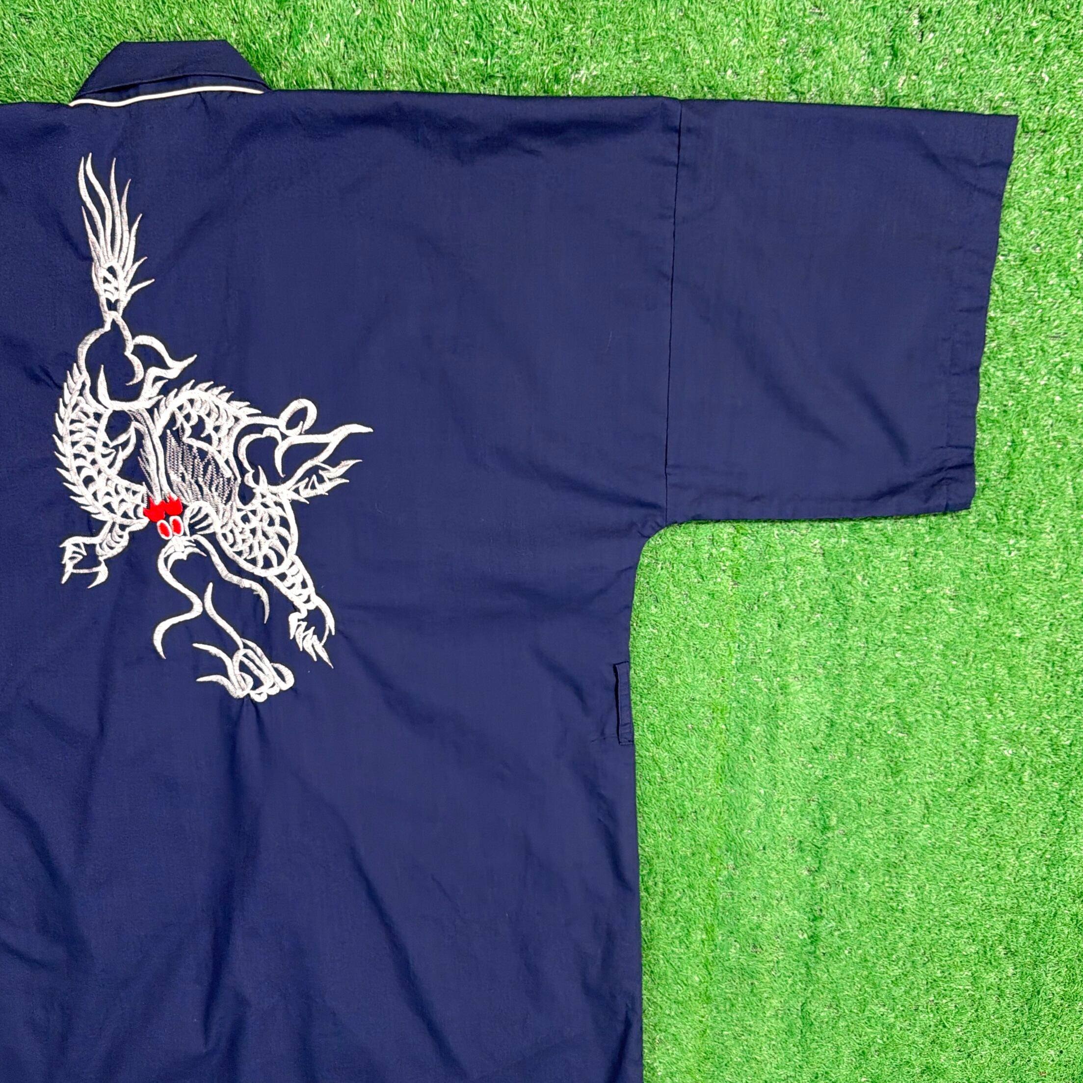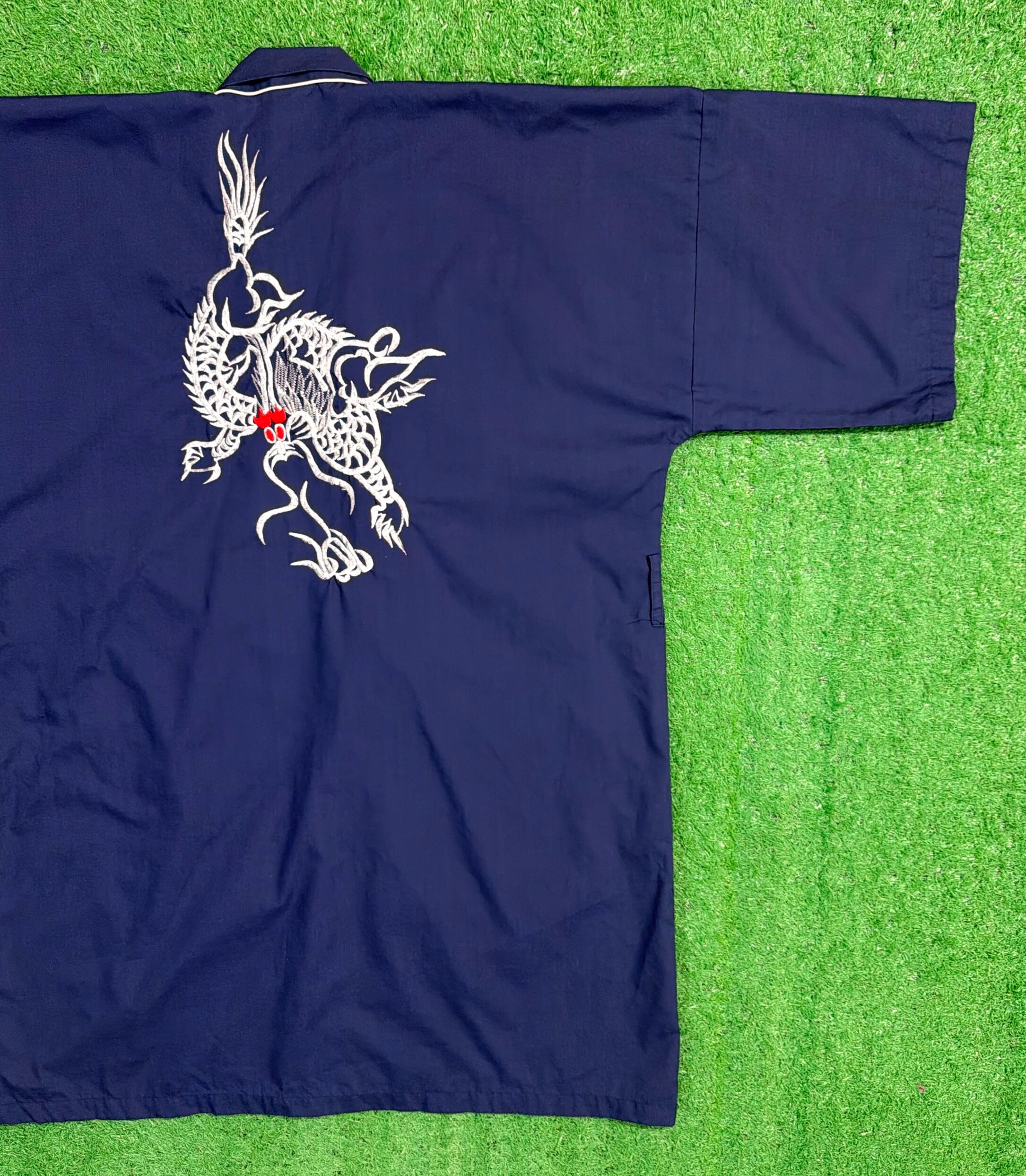 【Men's】 90s ドラゴン 刺繍 半袖 ガウン / 90年代 古着 シャツ 羽織り メンズ N0957