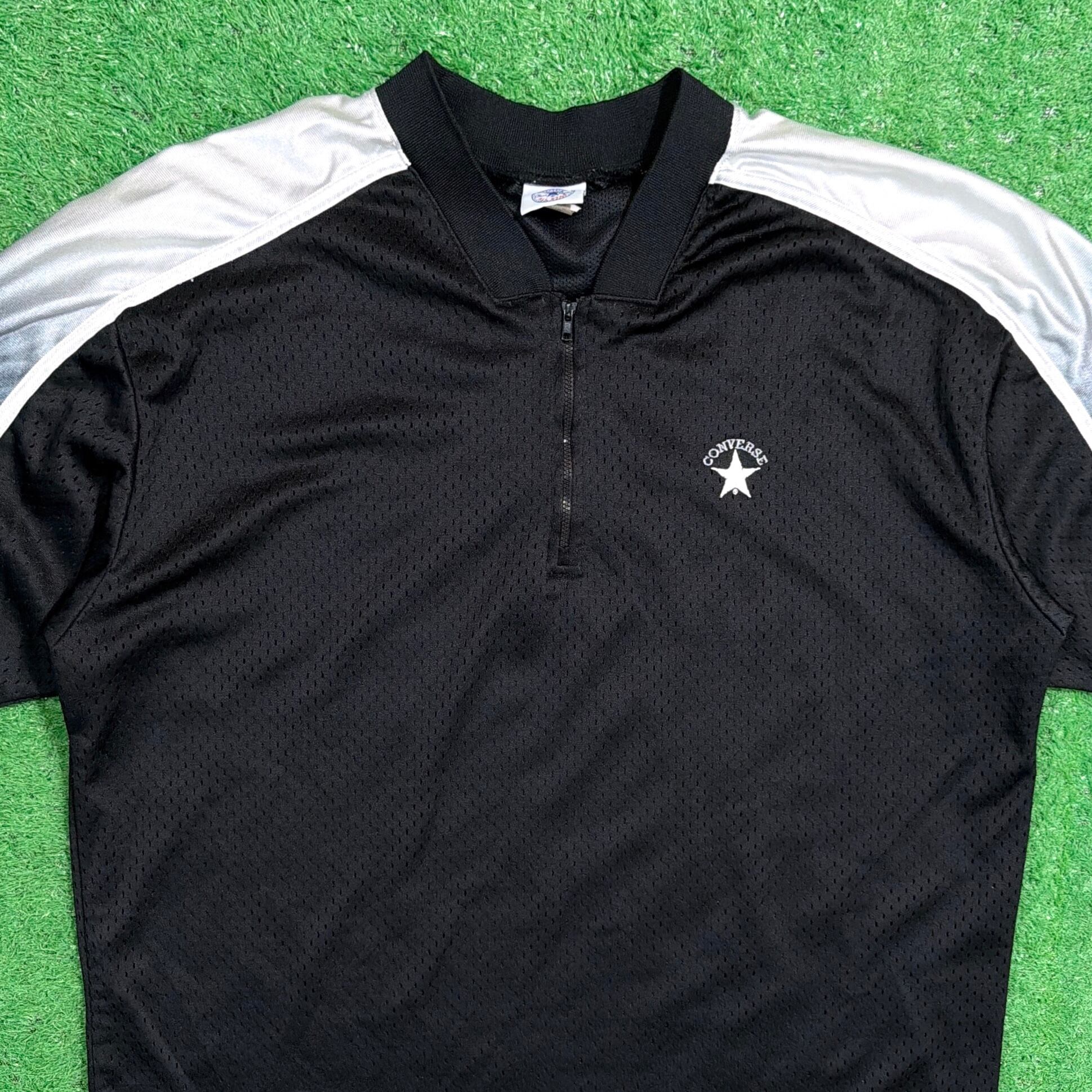【Men's】 90s CONVERSE ジャージ素材 ハーフジップ トップス / アメリカ製 USA製 90年代 古着 ゲームシャツ メンズ 半袖 メッシュ N0942