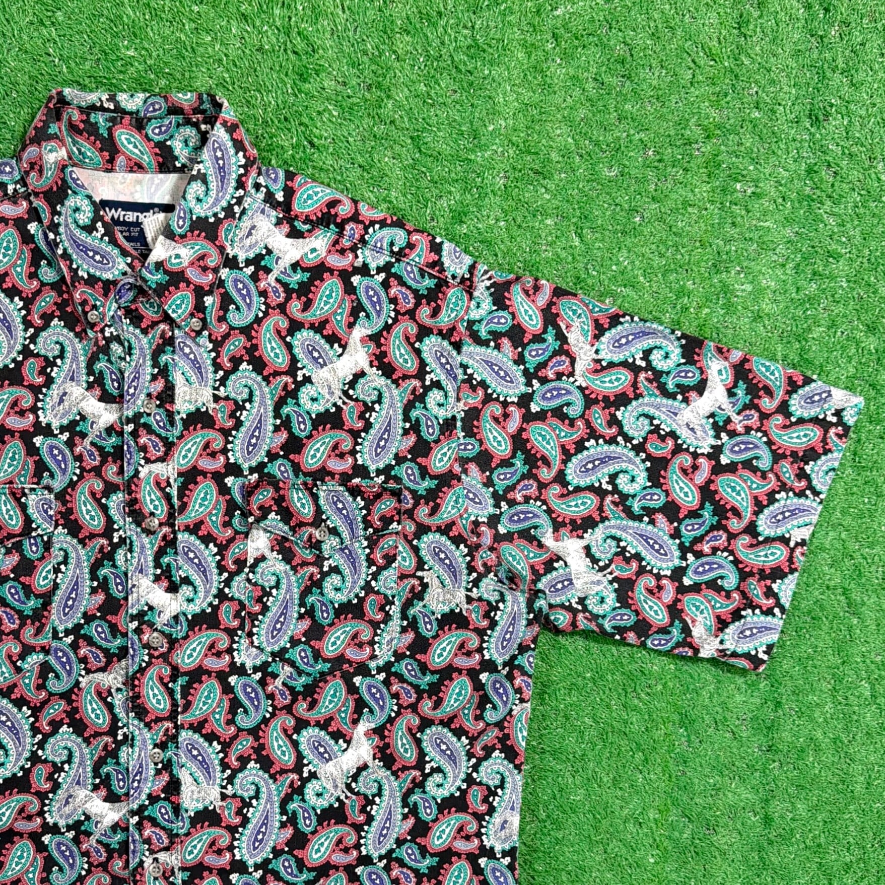 1990年代のWrangler、ペイズリー総柄の半袖シャツです。