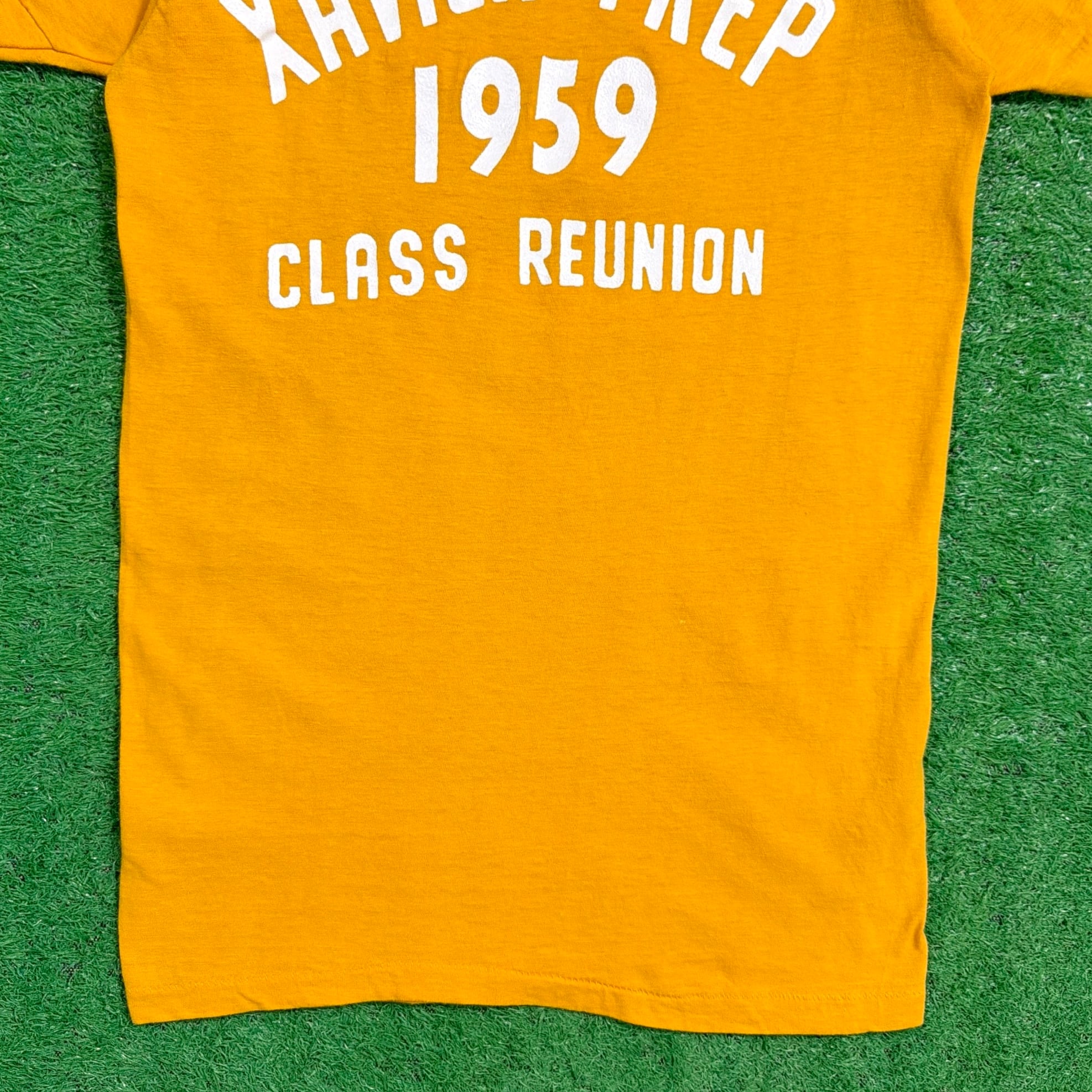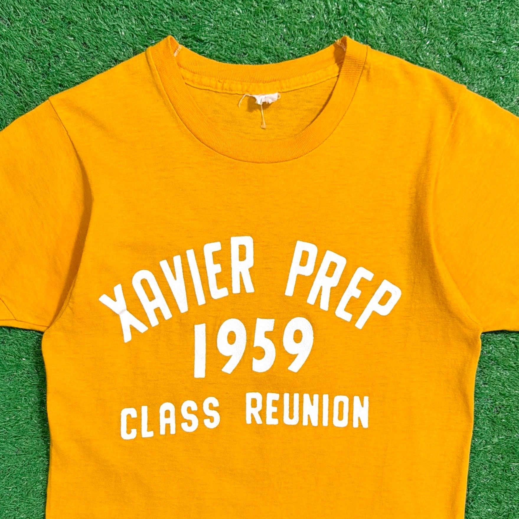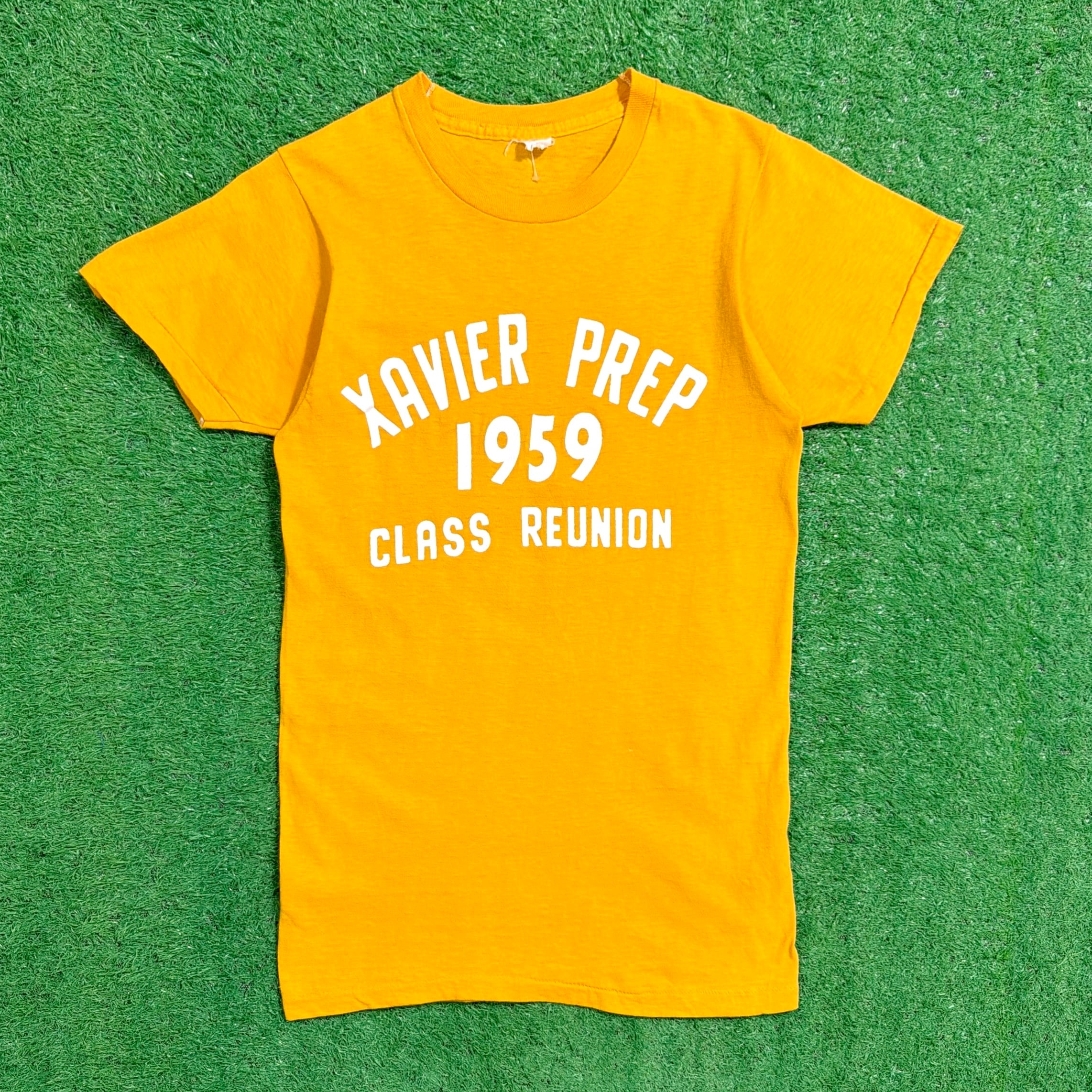 フロントには「XAVIER PREP 1959 CLASS REUNION」とプリントされており、アメリカの学校「Xavier Prep(ザビエル・プレップ)」の卒業生による同窓会(クラスリユニオン)を記念して作られた一枚です。