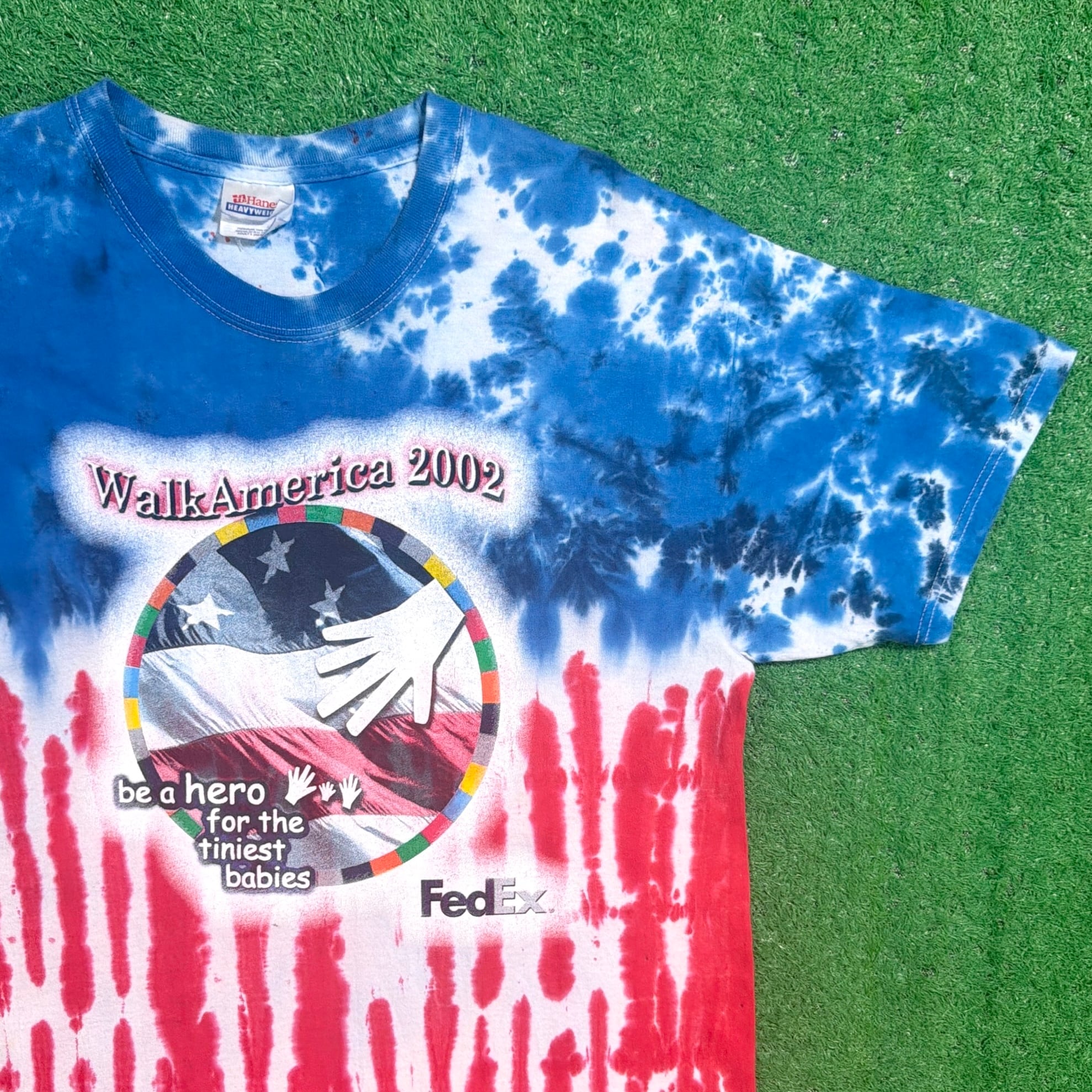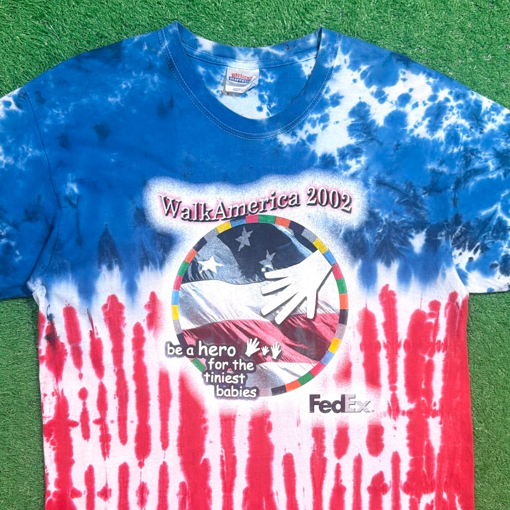 【Men's】 2002 Walk America ムラ染め Tシャツ / ティーシャツ T-Shirt タイダイ 星条旗 古着 FedEX N0977