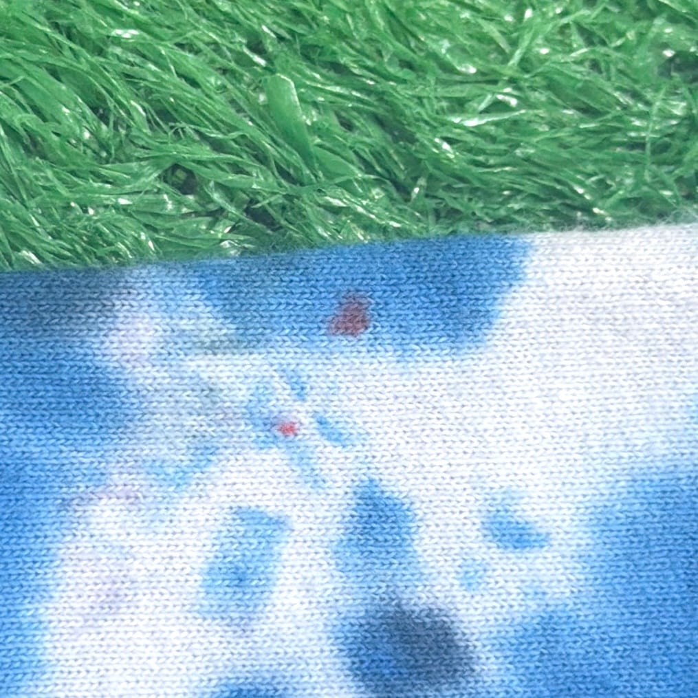デニムやカーゴパンツと合わせて、ストリート感のあるスタイリングにまとめるのがおすすめです。シンプルなボトムスと合わせることで、タイダイの柄がしっかり引き立ちます。