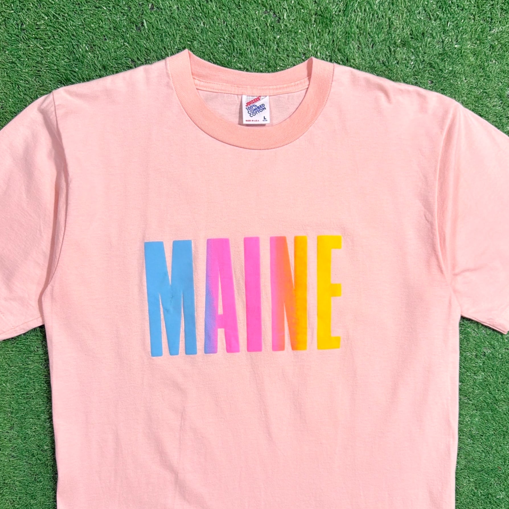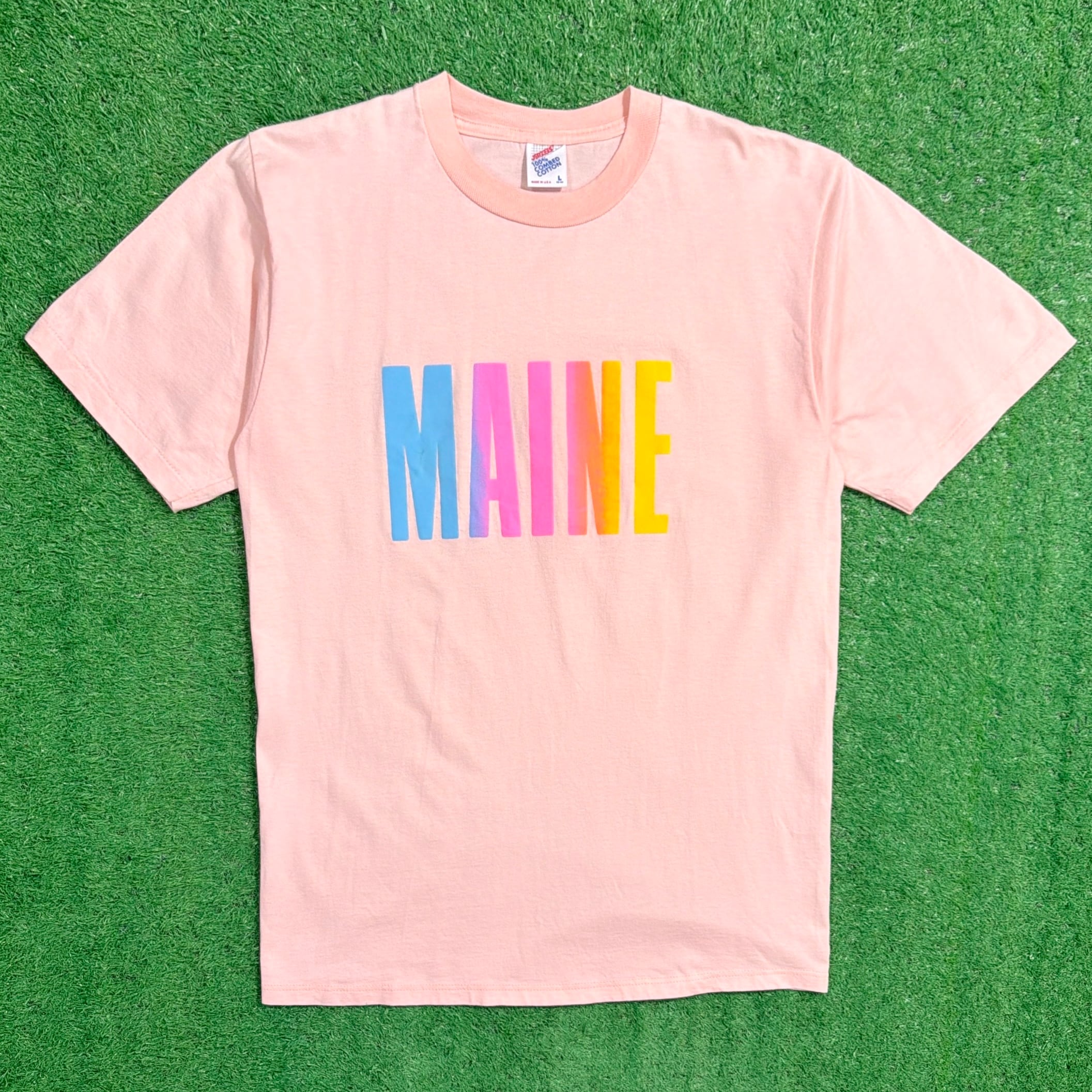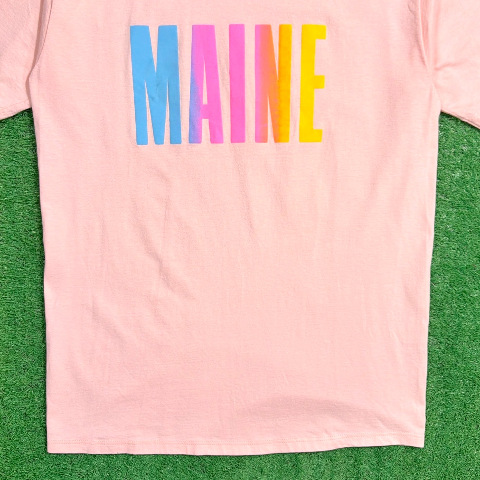 アメリカ・メイン州の名前がフロントにシンプルにプリントされた一枚で、観光地で販売されていたスーベニアTシャツと考えられるアイテムです。