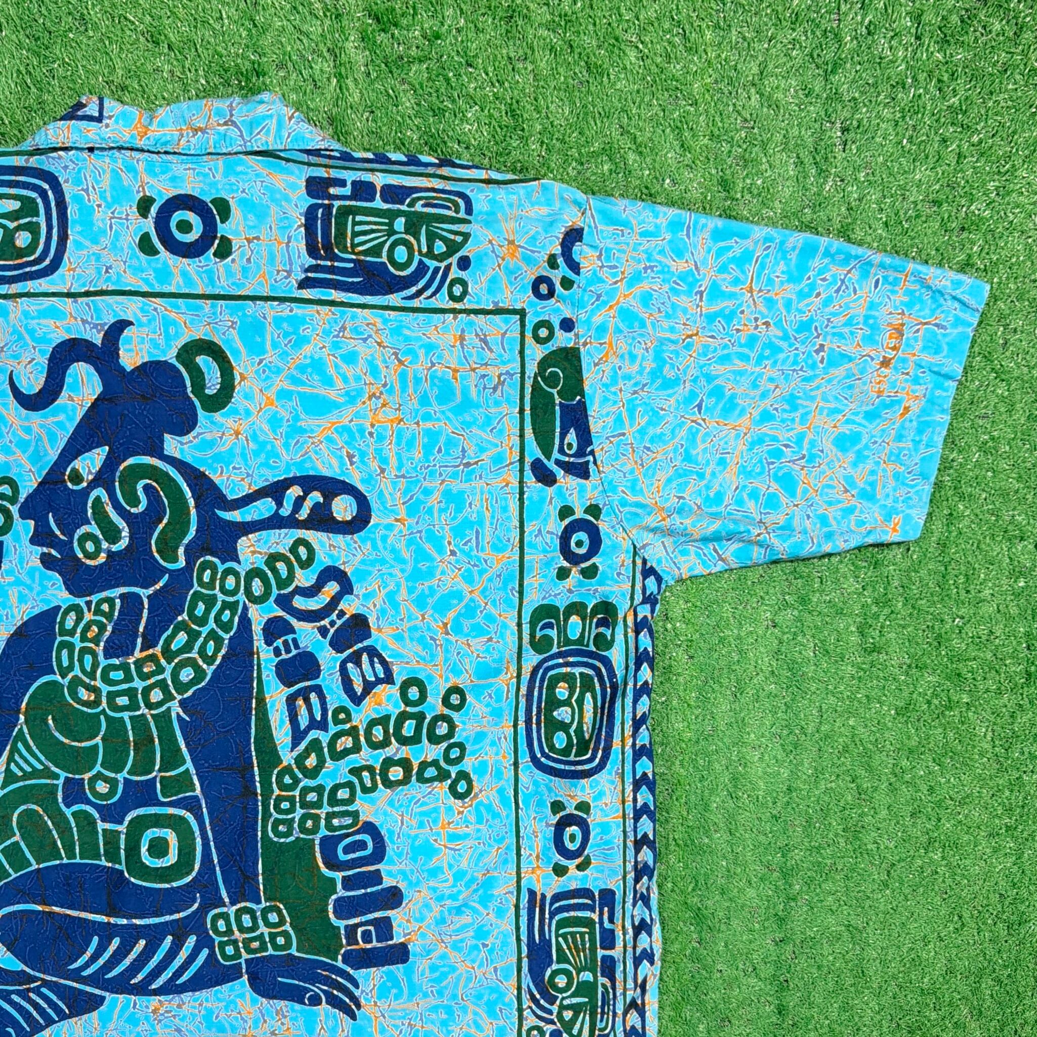 【Men's】エスニック 総柄 プルオーバーシャツ / 古着 シャツ Vネック メンズ 民族 1818