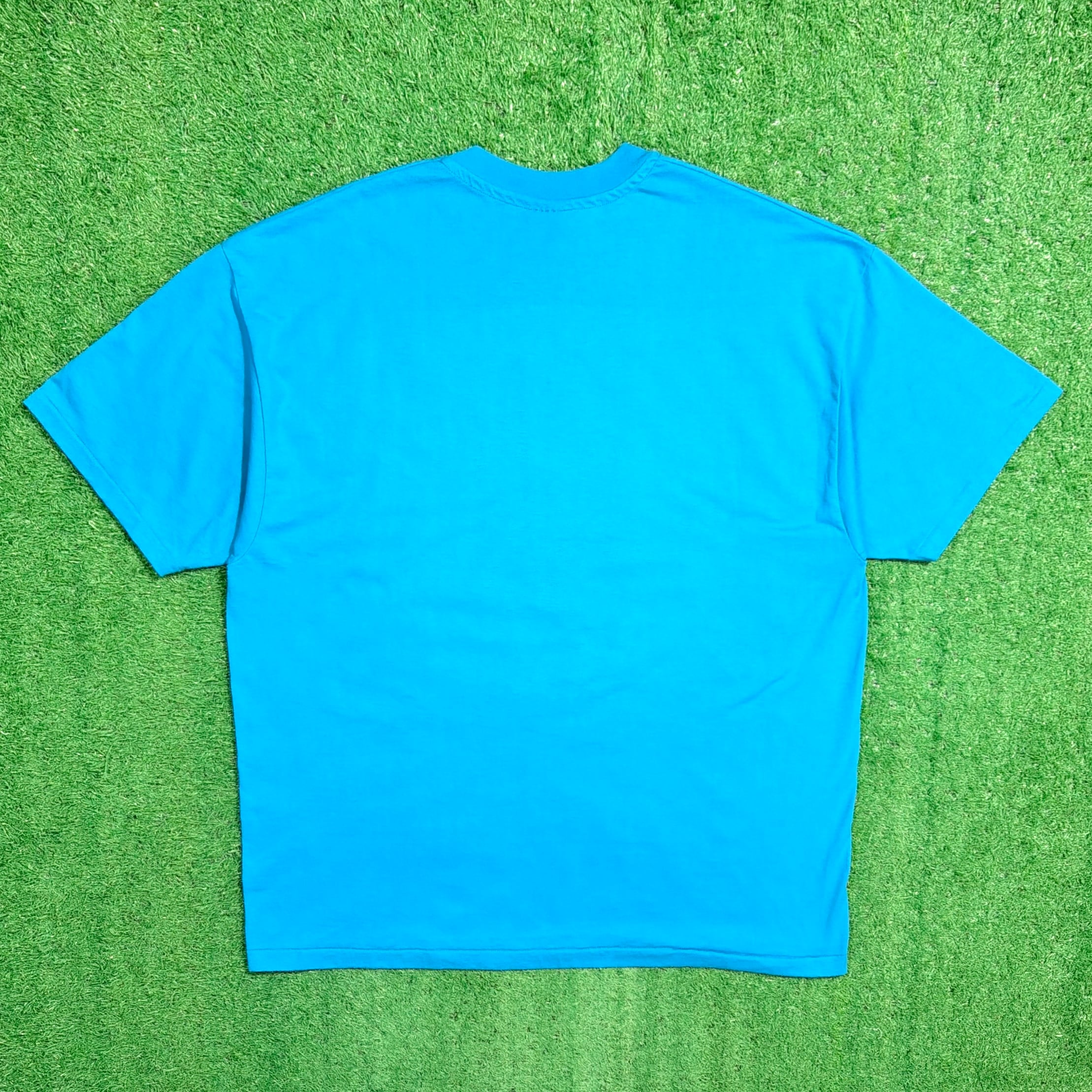 デニムやカーゴパンツと合わせて、プリントを主役にしたシンプルなスタイリングがおすすめです。ブルーのボディも映えるので、落ち着いたカラーのボトムスと合わせるだけでバランスよくまとまります。