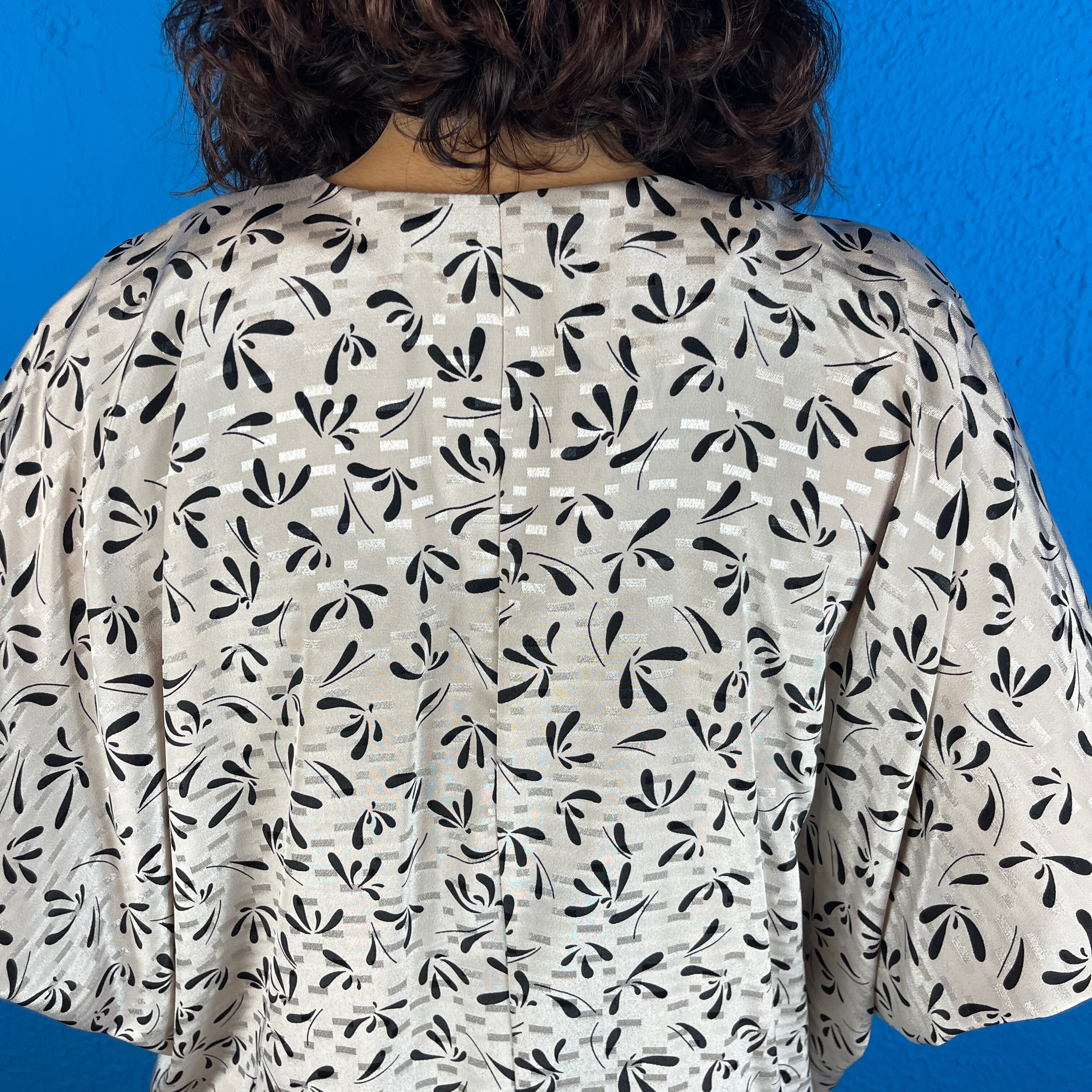 【Lady's】80s Dolman Sleeve Blouse / Made In USA Vintage ヴィンテージ 古着 ドルマン 個性派 ノーカラー シャツ ブラウス シャイニー