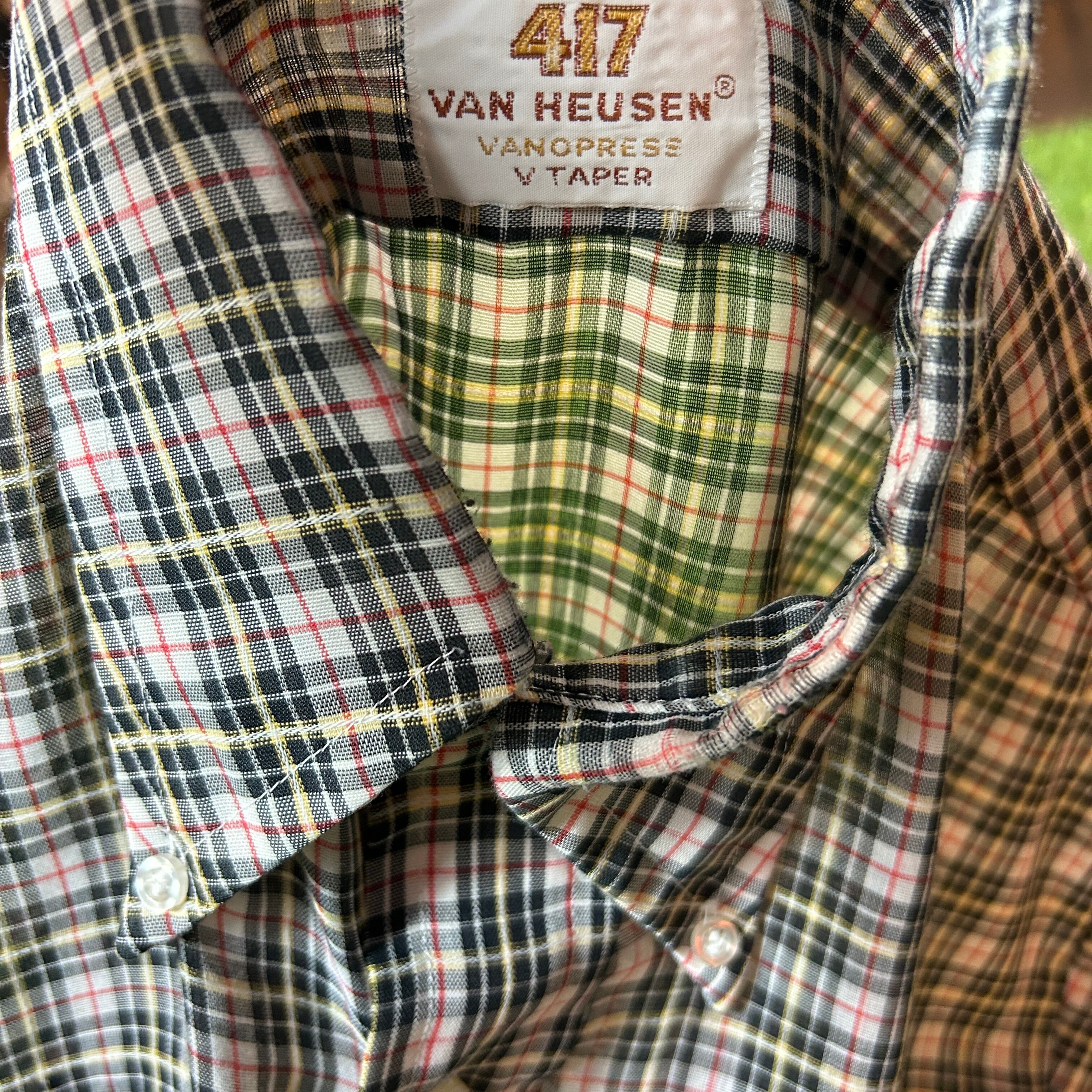 大人っぽくも可愛いタータンチェックが魅力的な70年代の半袖シャツです。