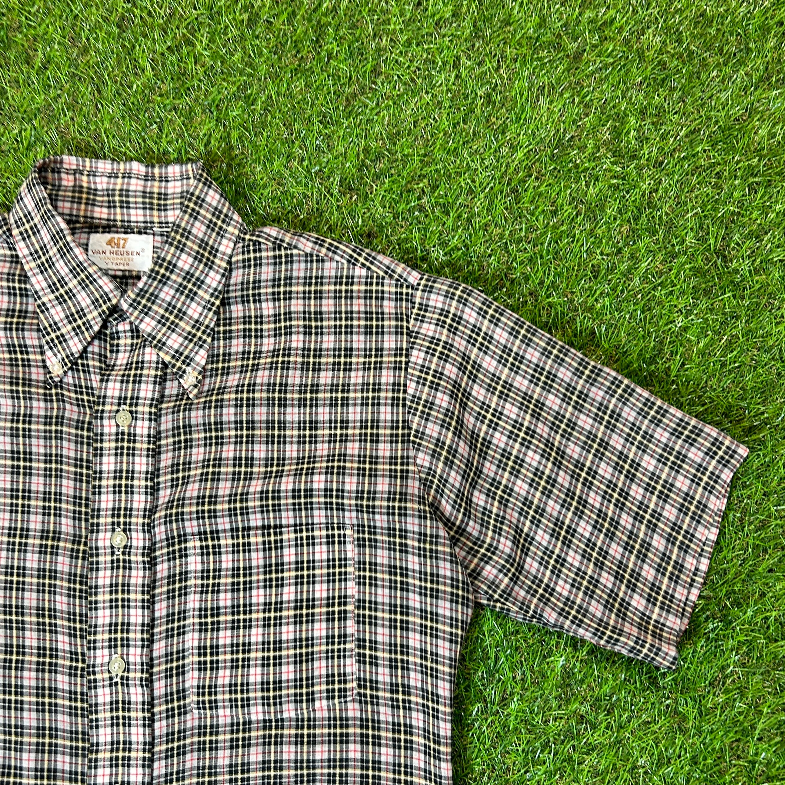 【Men's】 70s Tartan Checked Button Down Shirt / Vintage ヴィンテージ 古着 チェック 半袖 シャツ 総柄
