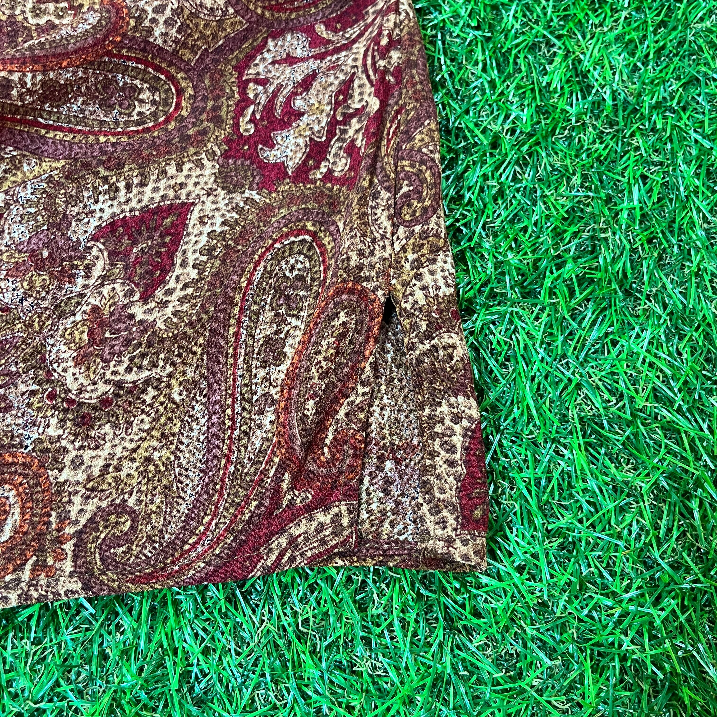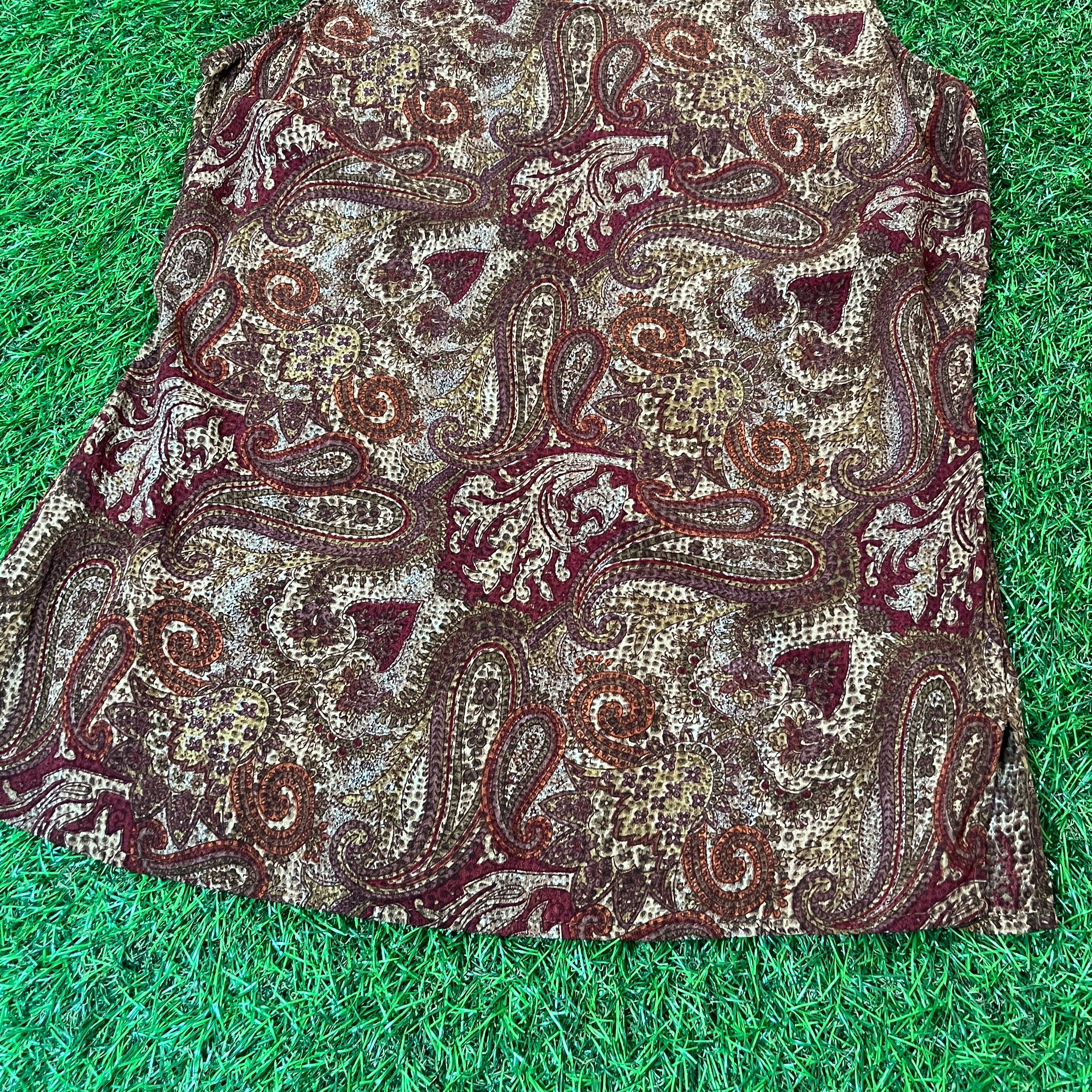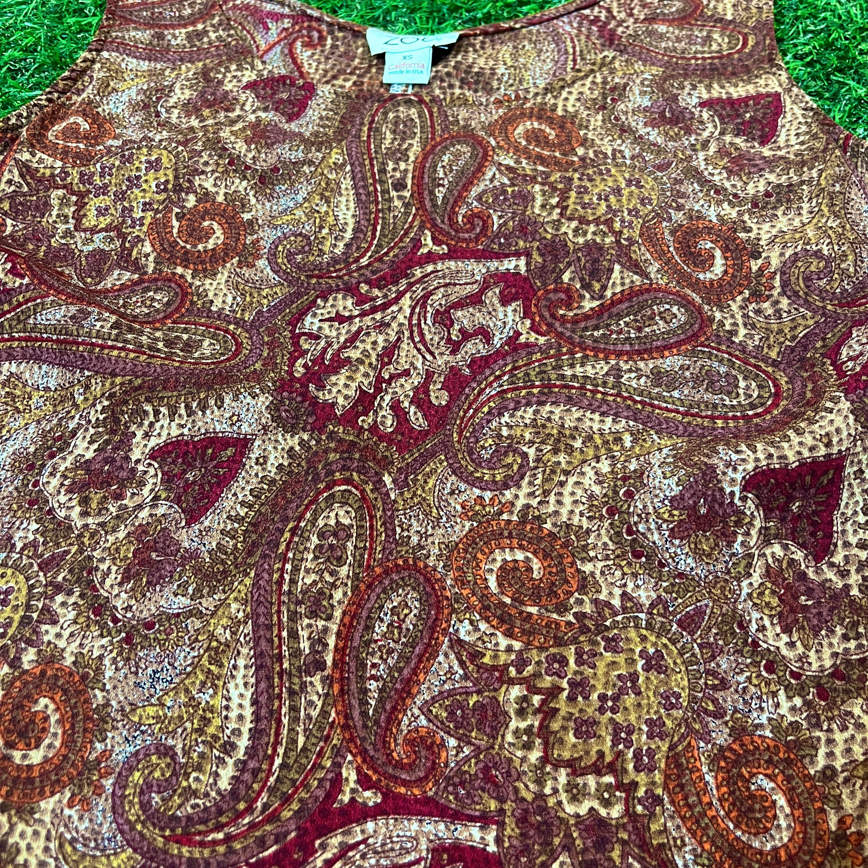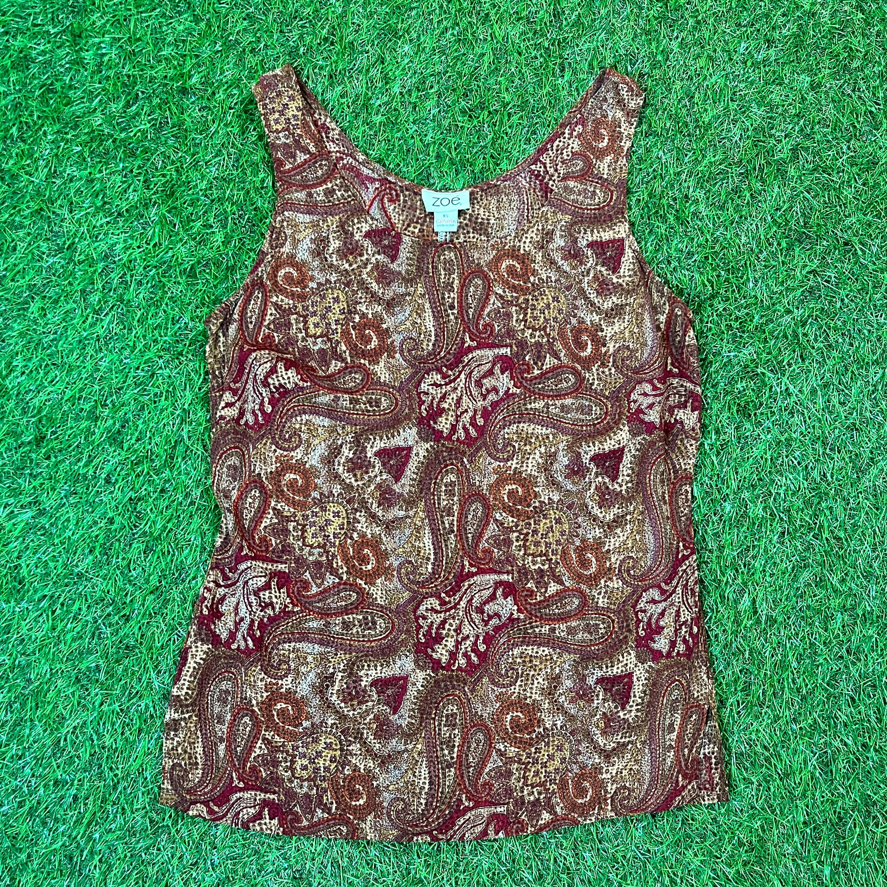 【Lady's】 90s〜 ペイズリー レーヨン 総柄 タンクトップ / Made In USA 古着 ボルドー 赤 ノースリーブ
