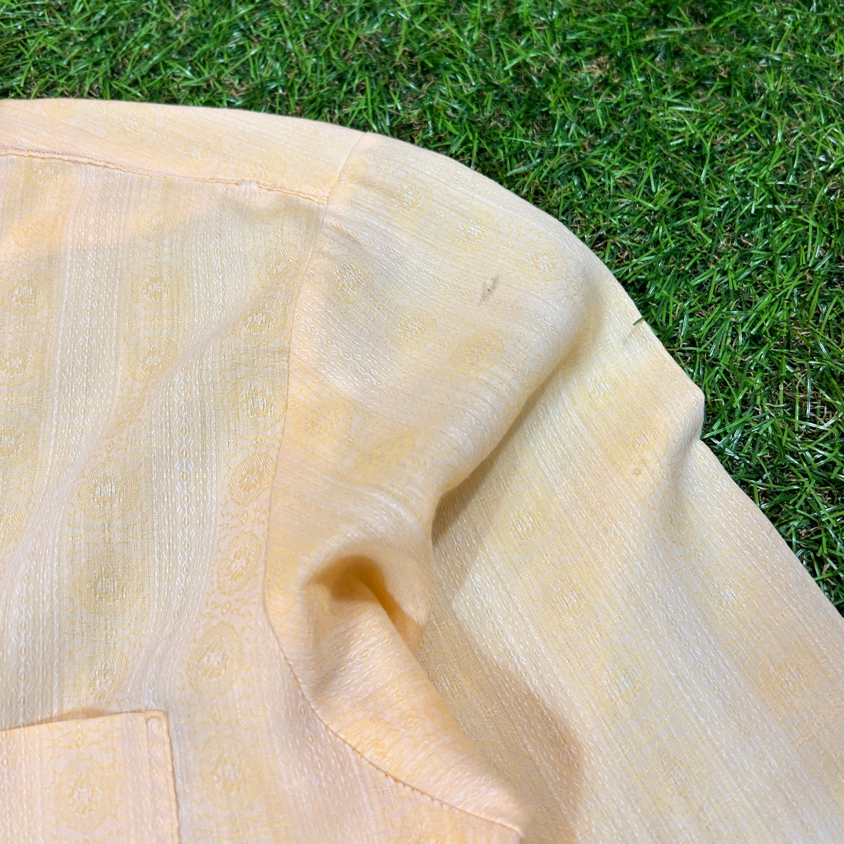 同系色で生地全体に刺繍がほどこされていてとってもかっこいいアイテムです。70年代ならではの大きな襟もとってもクールです