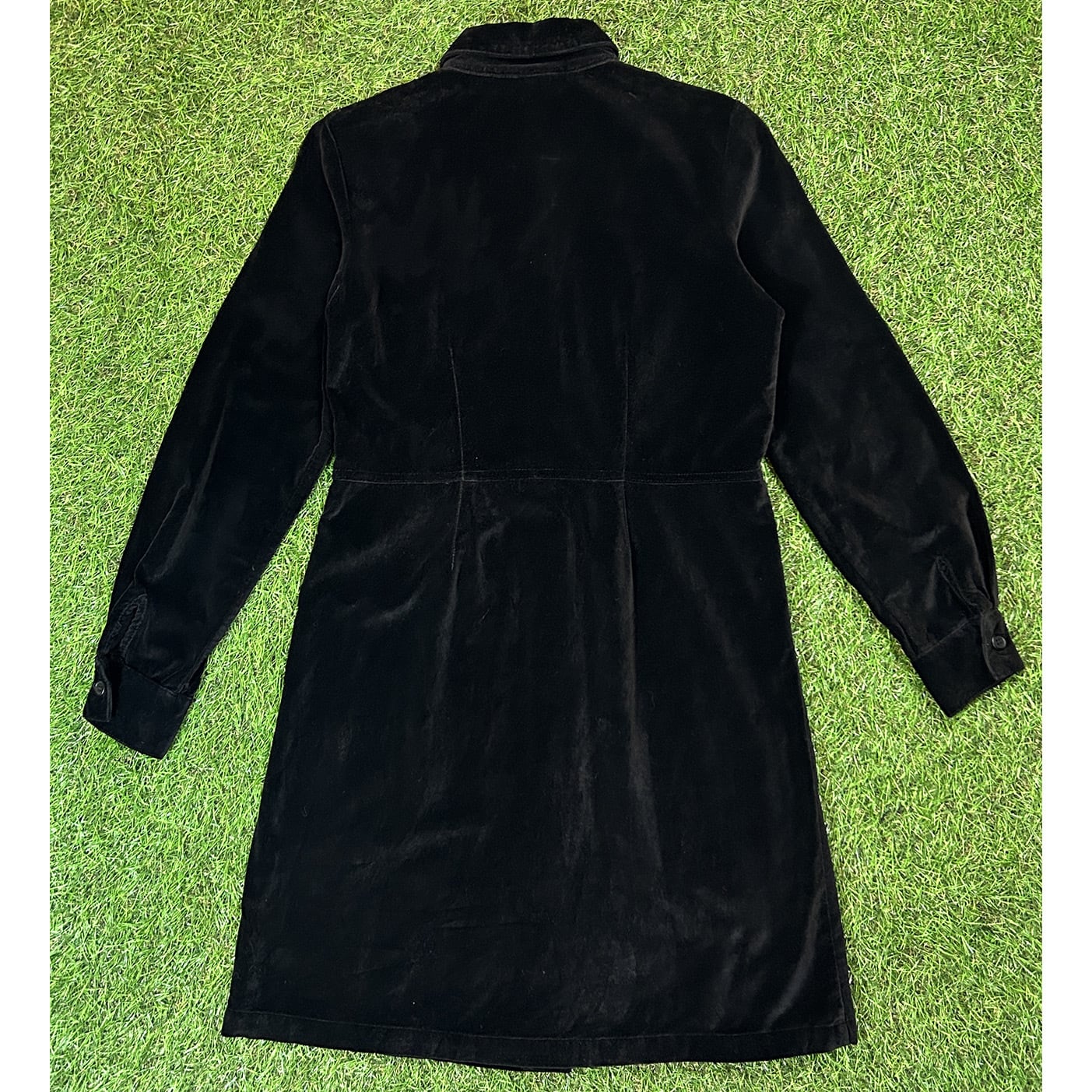 【Lady's】90s ベロア 黒 ブラック 長袖 シャツ ワンピース / Made In USA 古着 Vintage ヴィンテージ ひざ丈