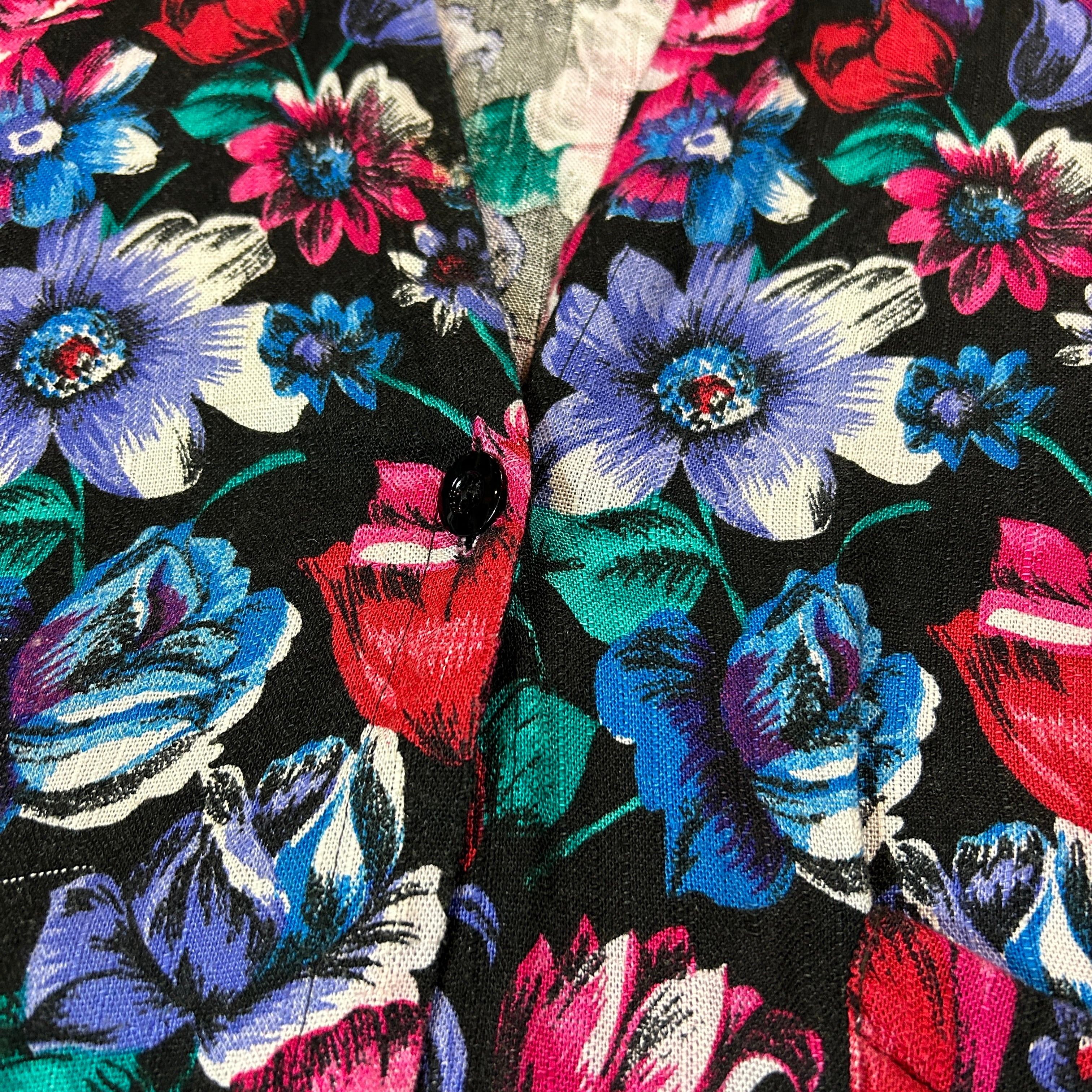 【Lady's】80s 花柄 ノーカラー ジャケット / Made In USA Vintage ヴィンテージ 古着 総柄 テーラード
