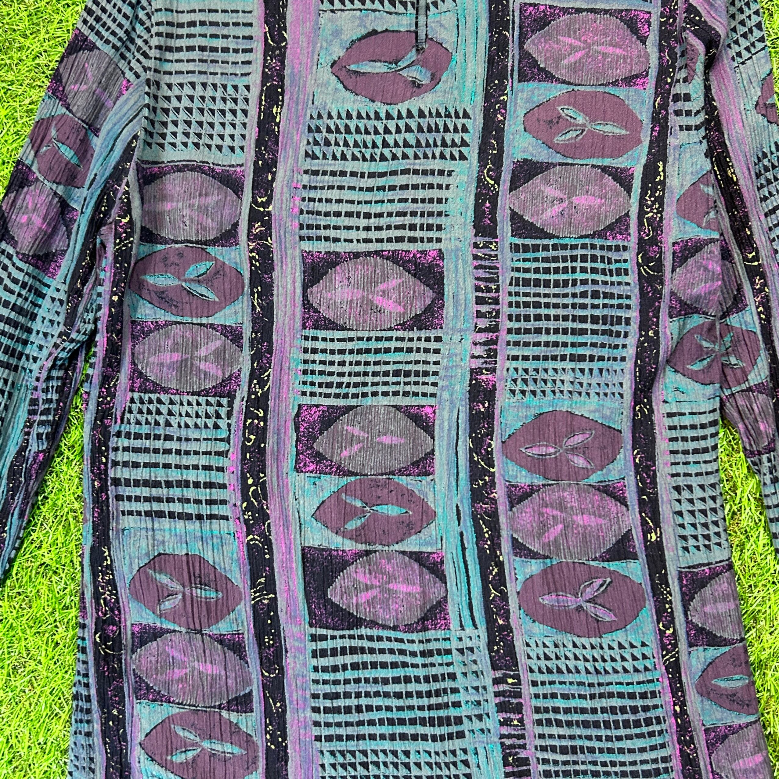 【Lady's】90s 総柄 シワ 加工 レーヨン ワンピース / Made In USA Vintage ヴィンテージ 古着 ドレス ボヘミアン ヒッピー パープル ネイビー