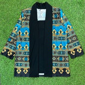 ジャケットのエスニック柄にブラックトーンでまとまっていて着るだけでお洒落に着こなせます。