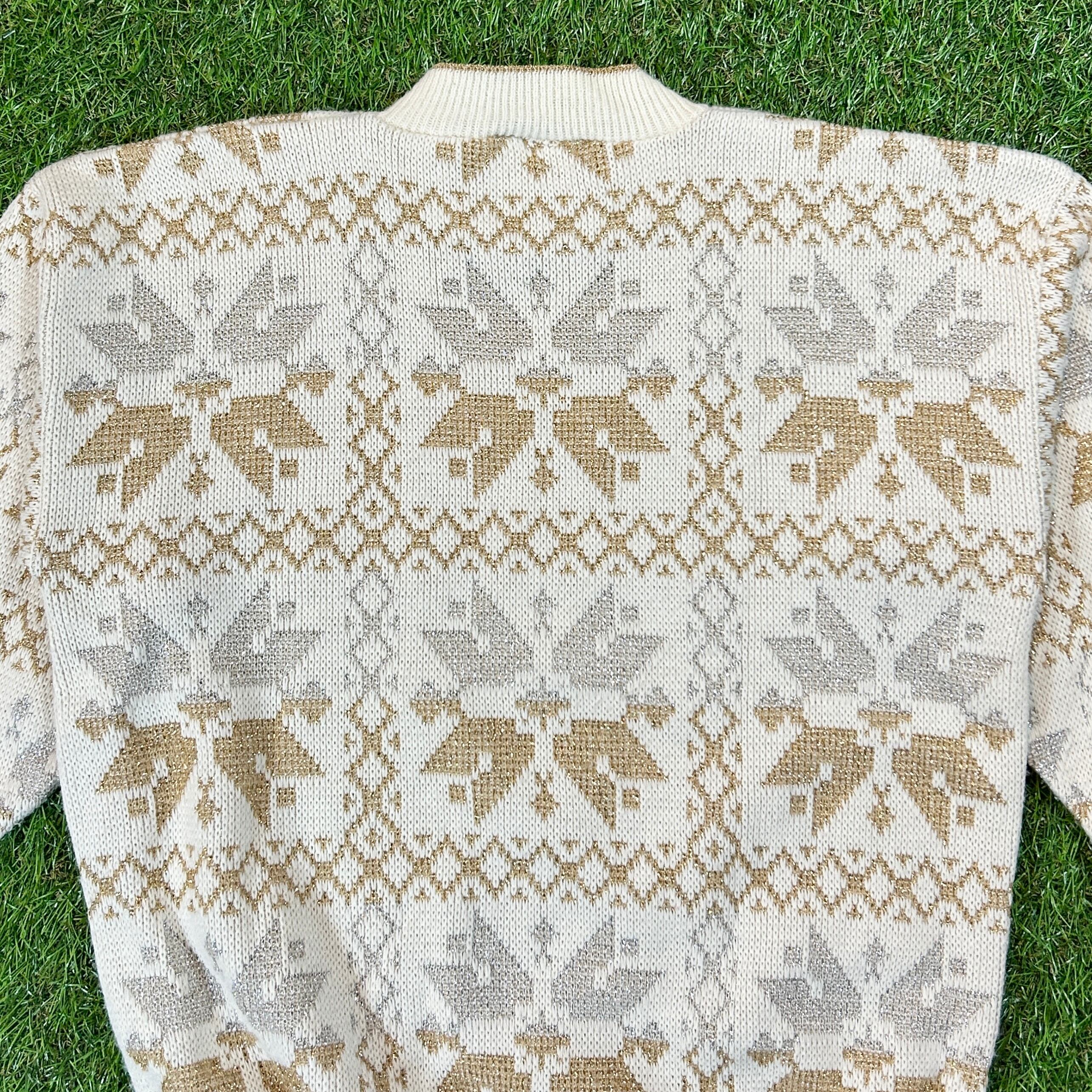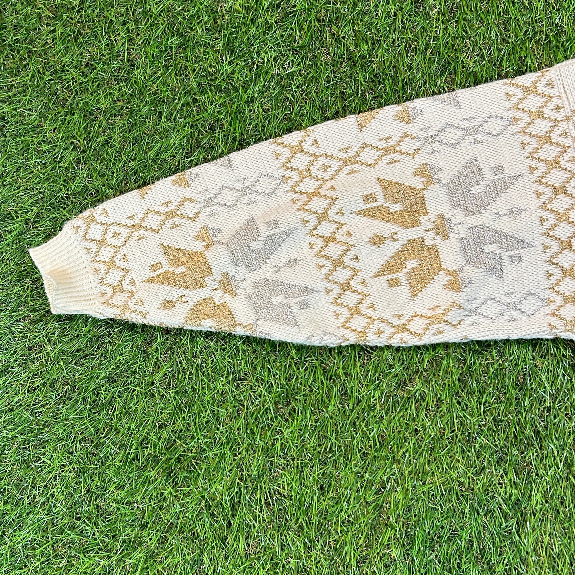 シルバーとゴールドのラメにノルディック柄がとても魅力的な90年代のニットです。