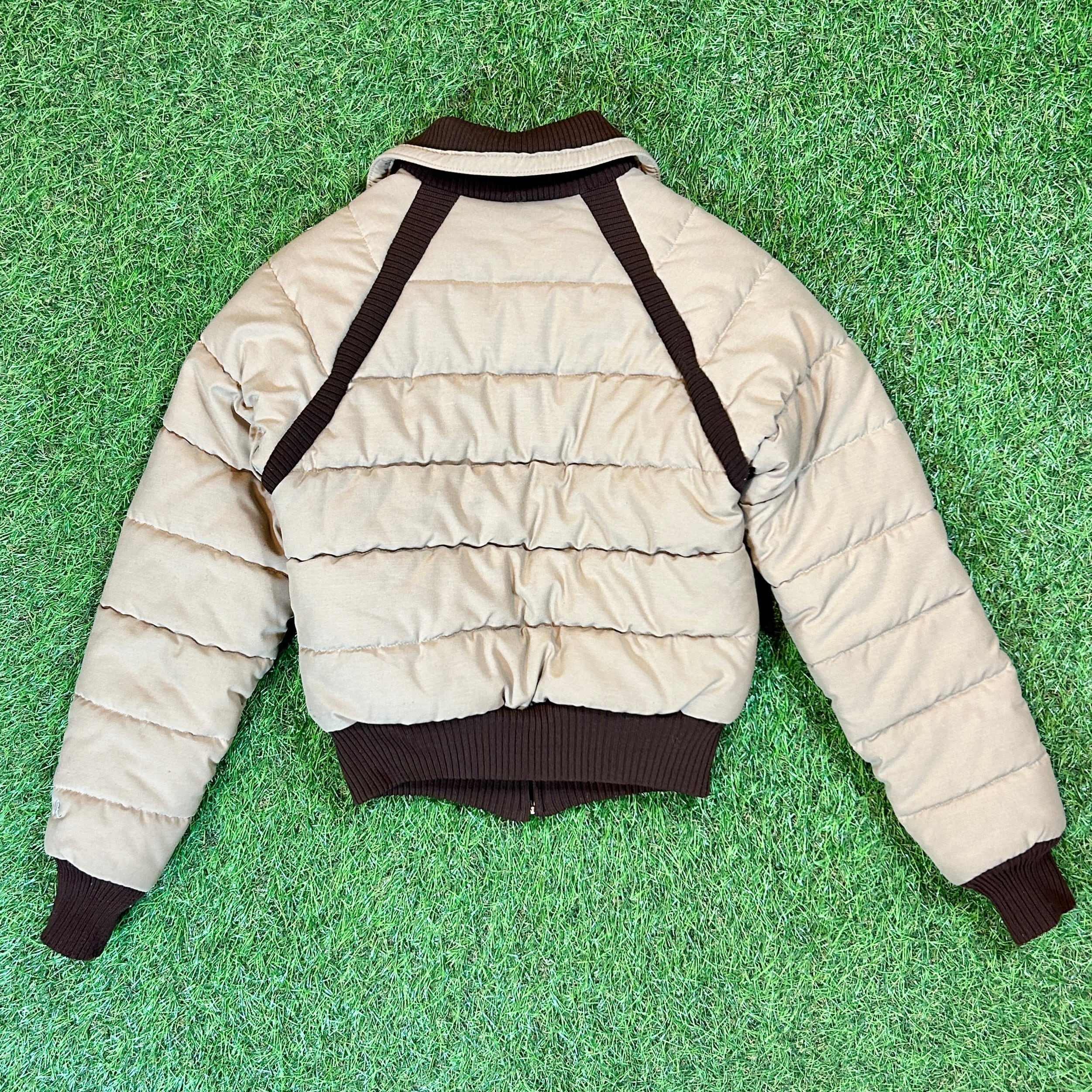 【Lady's】70s ベージュ ブラウン 中綿 スキー ジャケット / Made In USA ミニ丈 小さいサイズ ヴィンテージ Vintage 古着 アウター