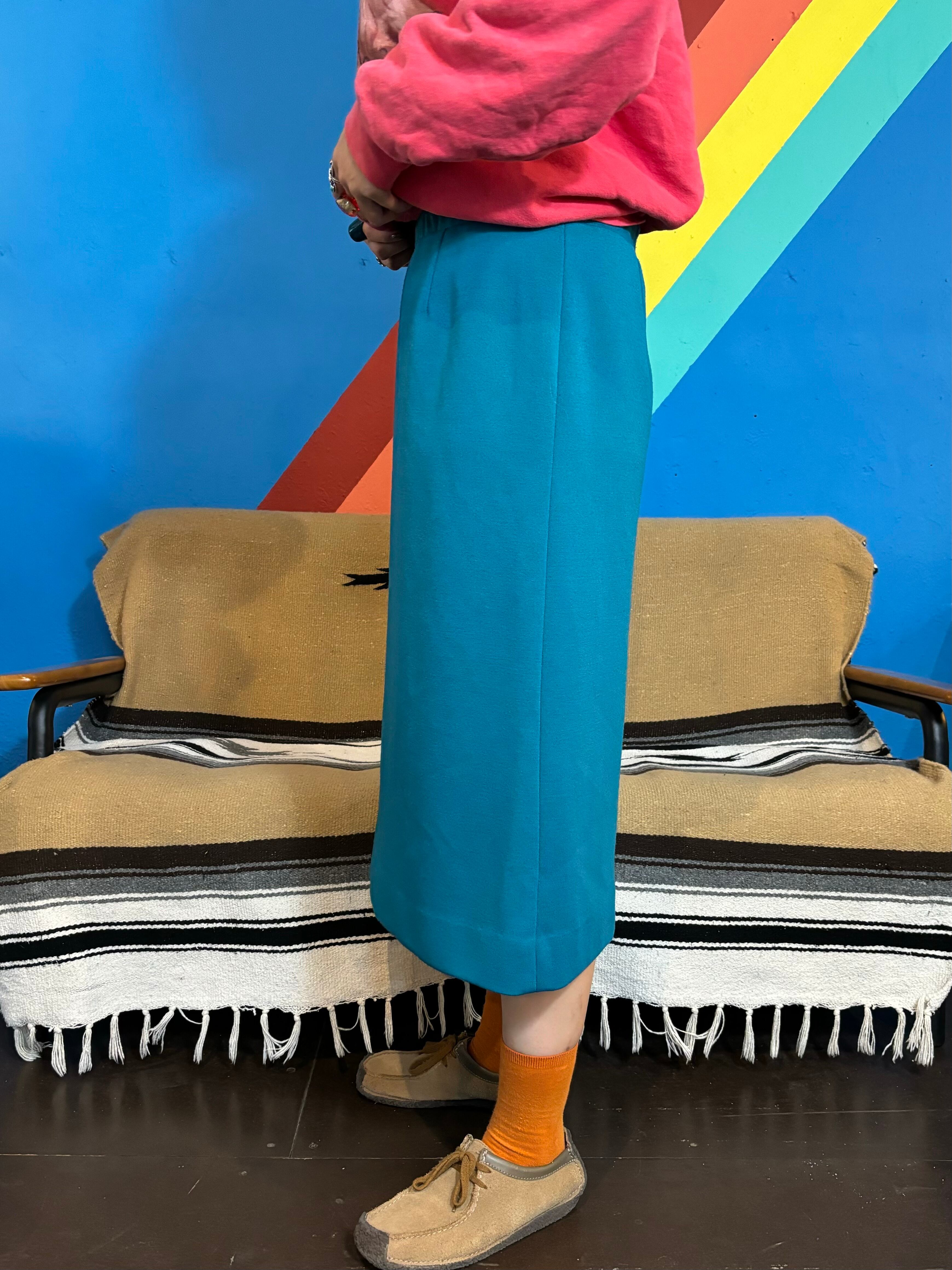 【Lady's】80s ターコイズブルー ミモレ丈 スカート / Vintage ヴィンテージ 古着 青 大人古着