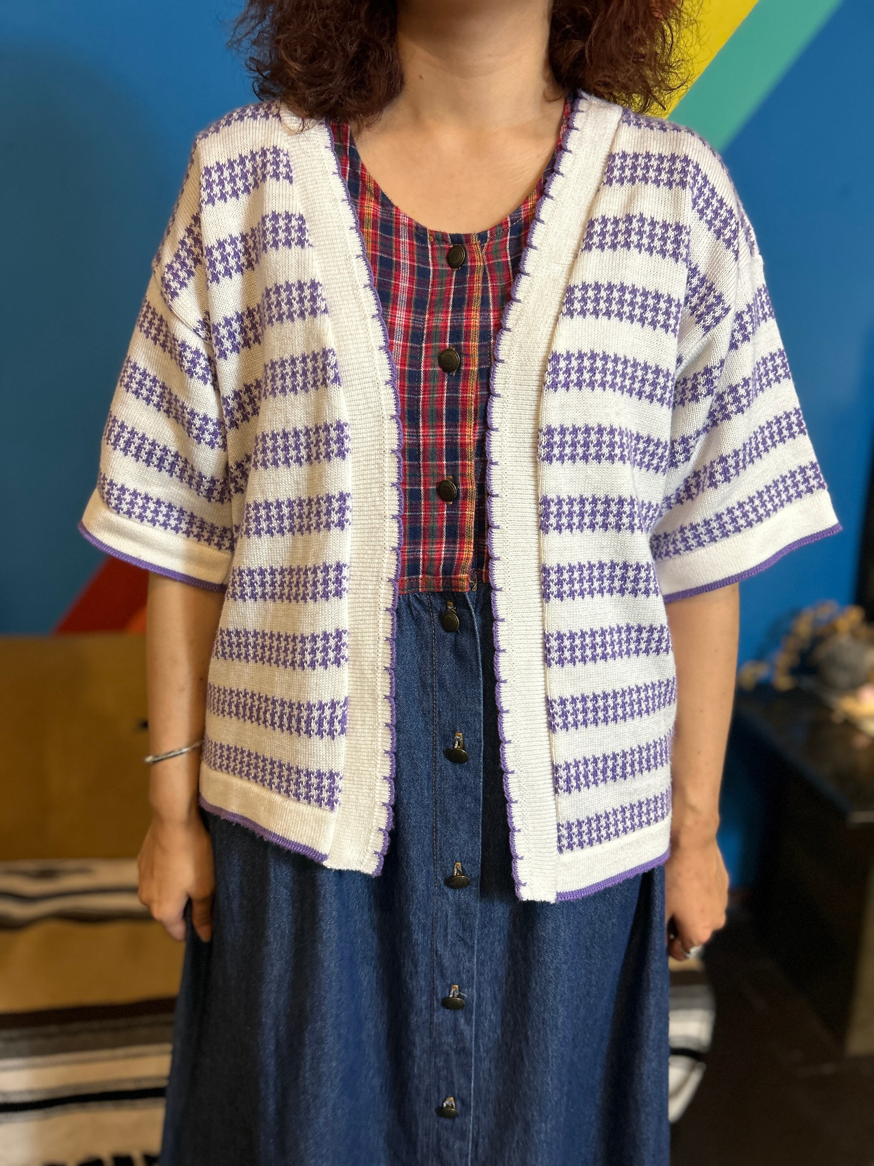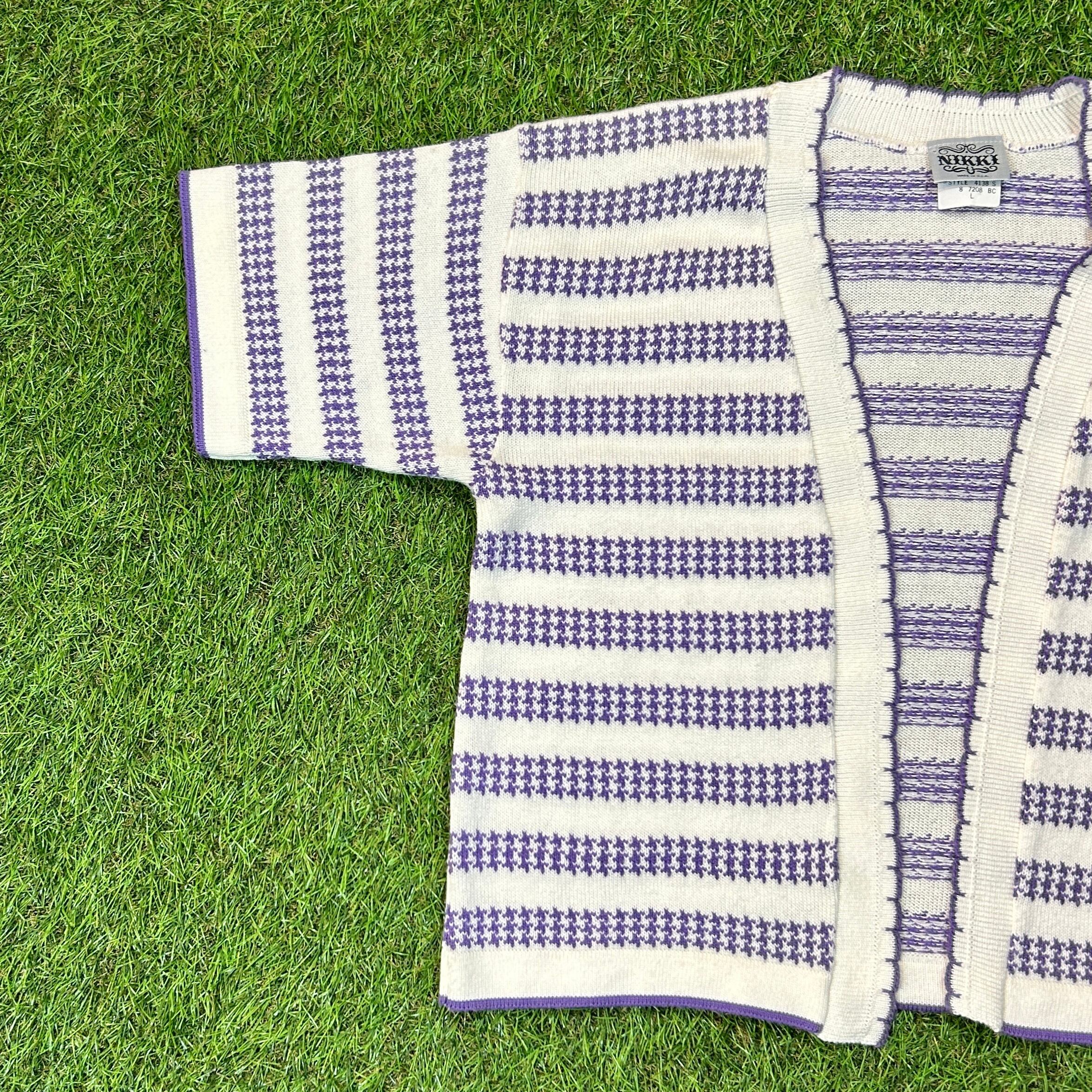 【Lady's】90s ストライプ サマー ニット カーディガン / Made In USA Vintage ヴィンテージ 古着 カーデガン トップス 羽織