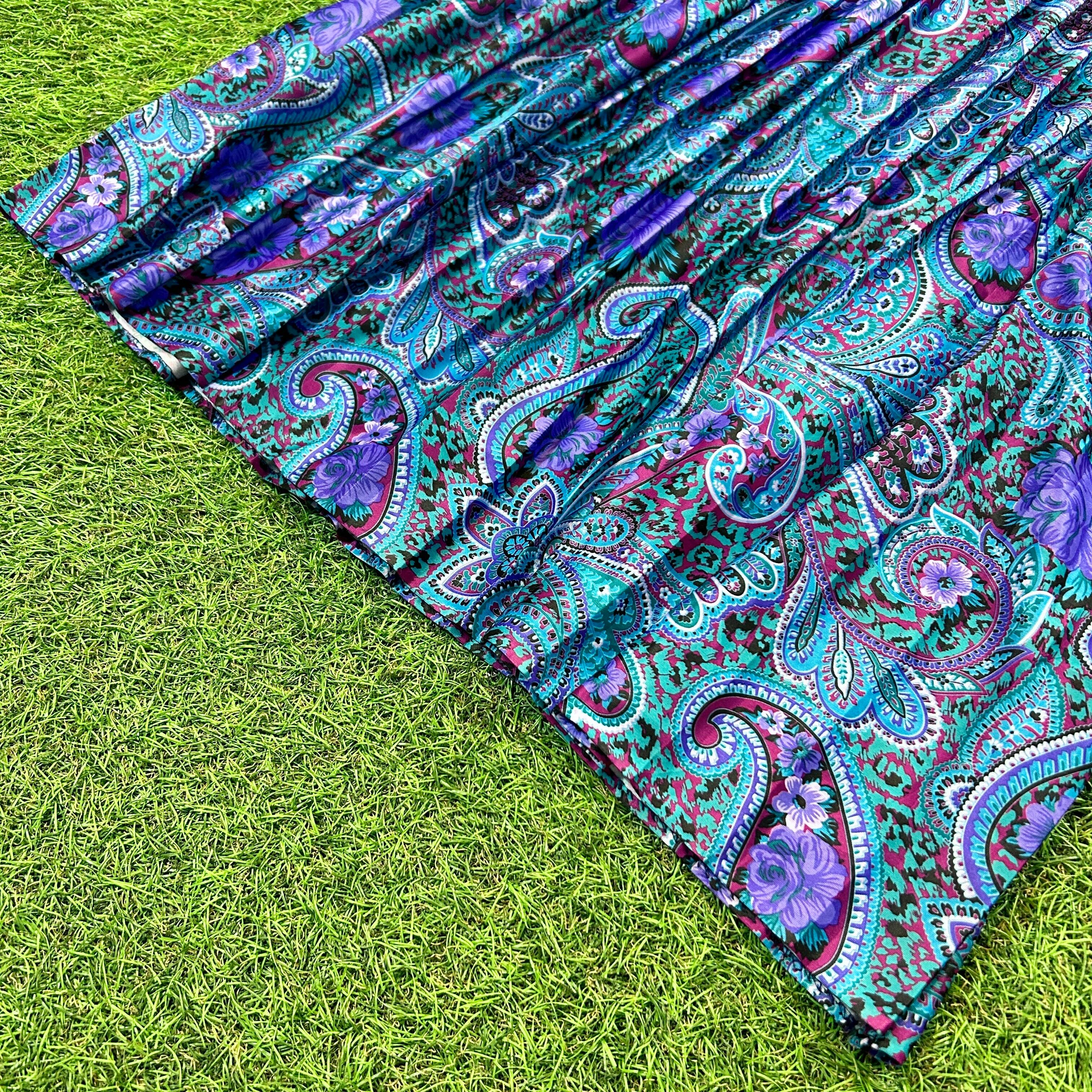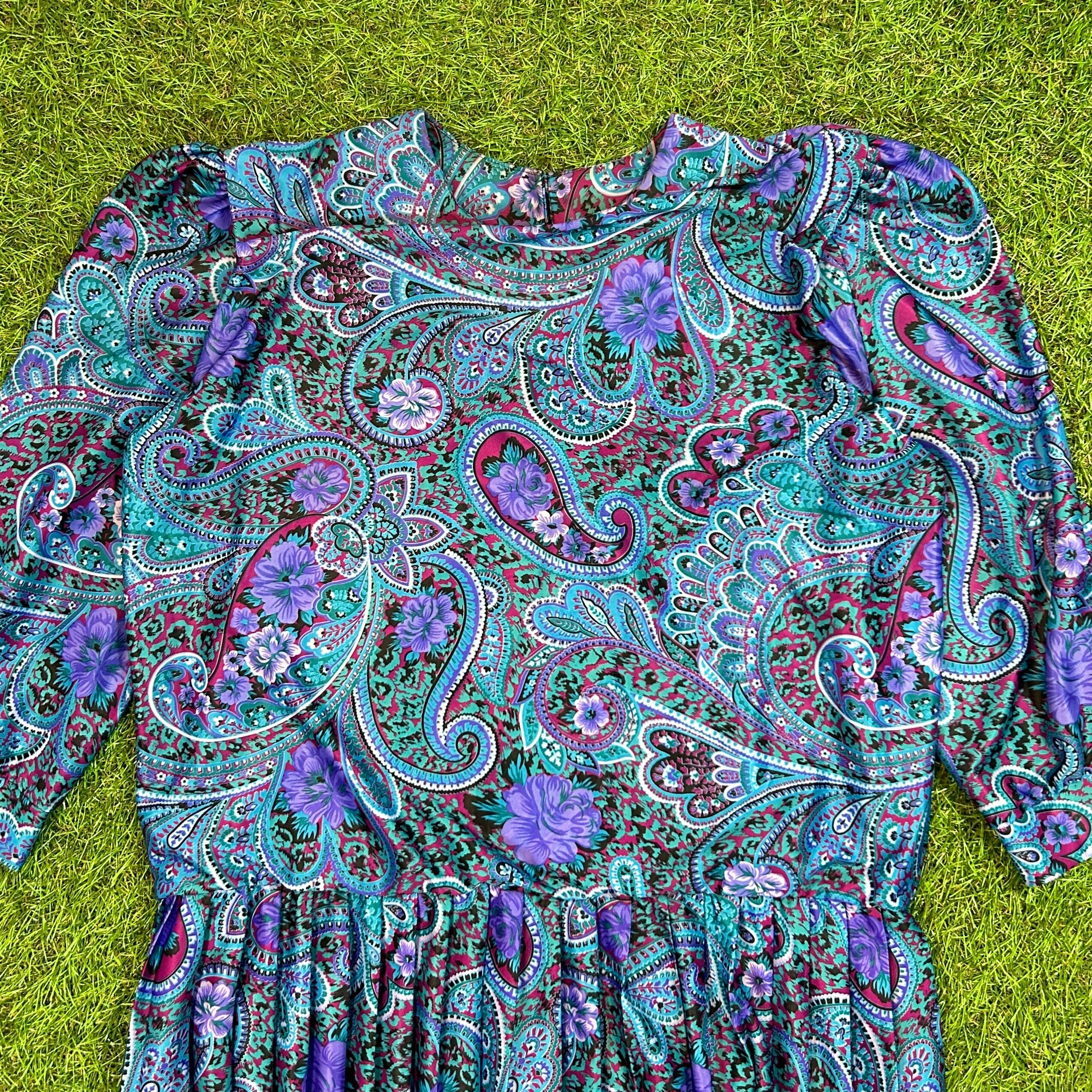 【Lady's】80s ペイズリー 総柄 七分丈 ワンピース / Made In USA Vintage ヴィンテージ 古着 ドレス パープル 紫