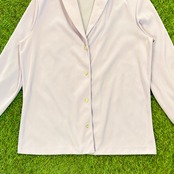 シャツのようなジャケットのようなカーディガンのようなデザインで大人っぽいシルエットが◎ジャージのような素材感で薄紫(ラベンダー)の色味がとっても可愛いです。
