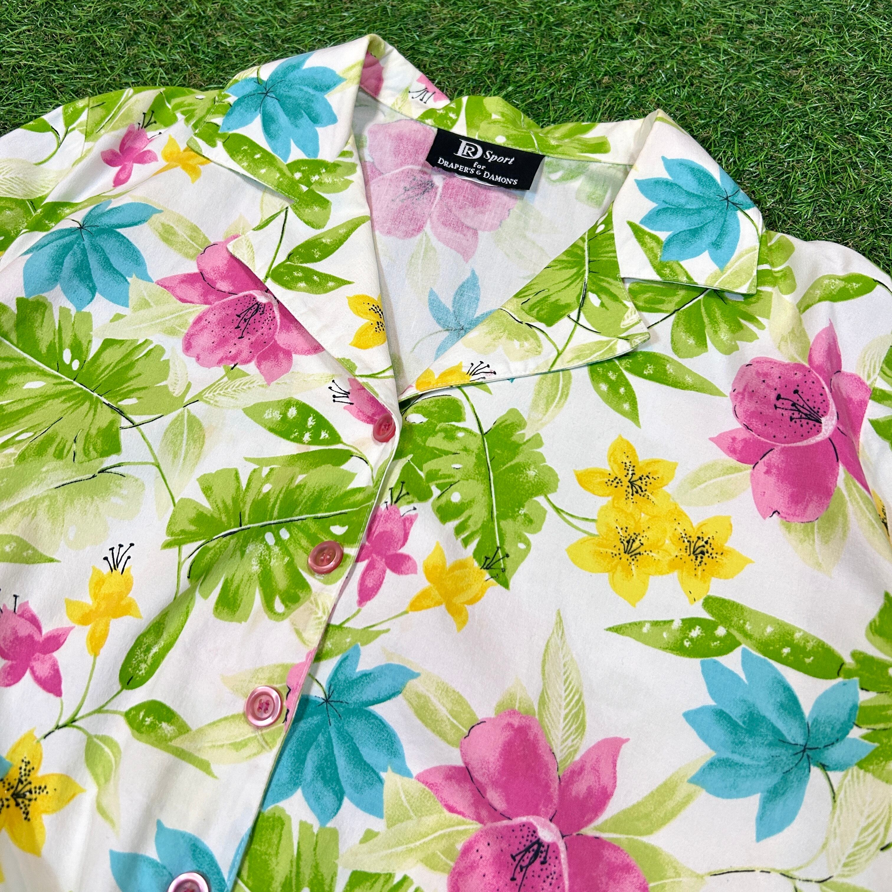 【Lady's】90s パステルカラー フラワーパターン シャツ ジャケット / Vintage ヴィンテージ 古着 開襟