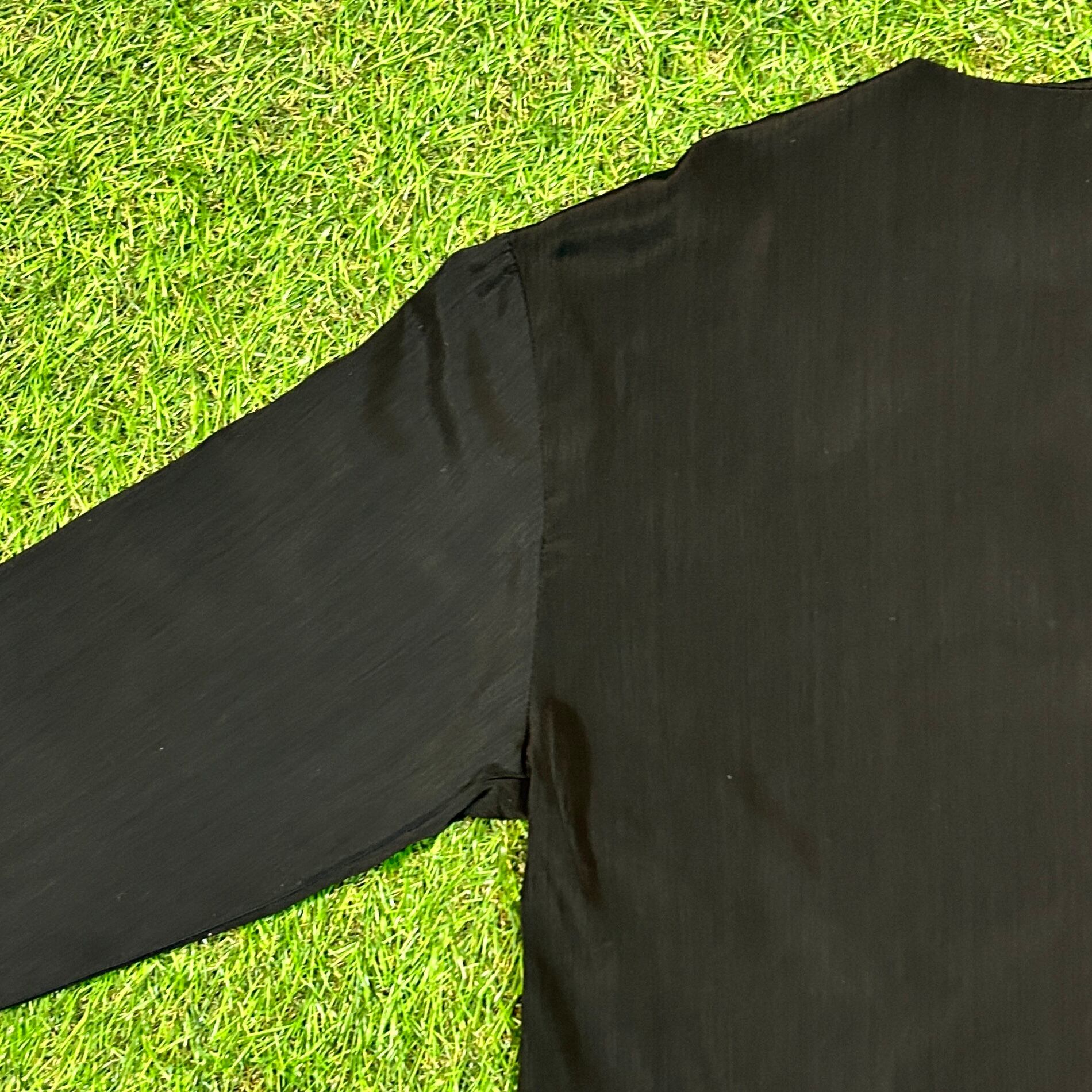 【Lady's】80s 花柄刺繍 ノーカラー デザイン シャツ / Made In USA Vintage ヴィンテージ 古着 長袖シャツ 襟無し 黒 ブラック 大人古着
