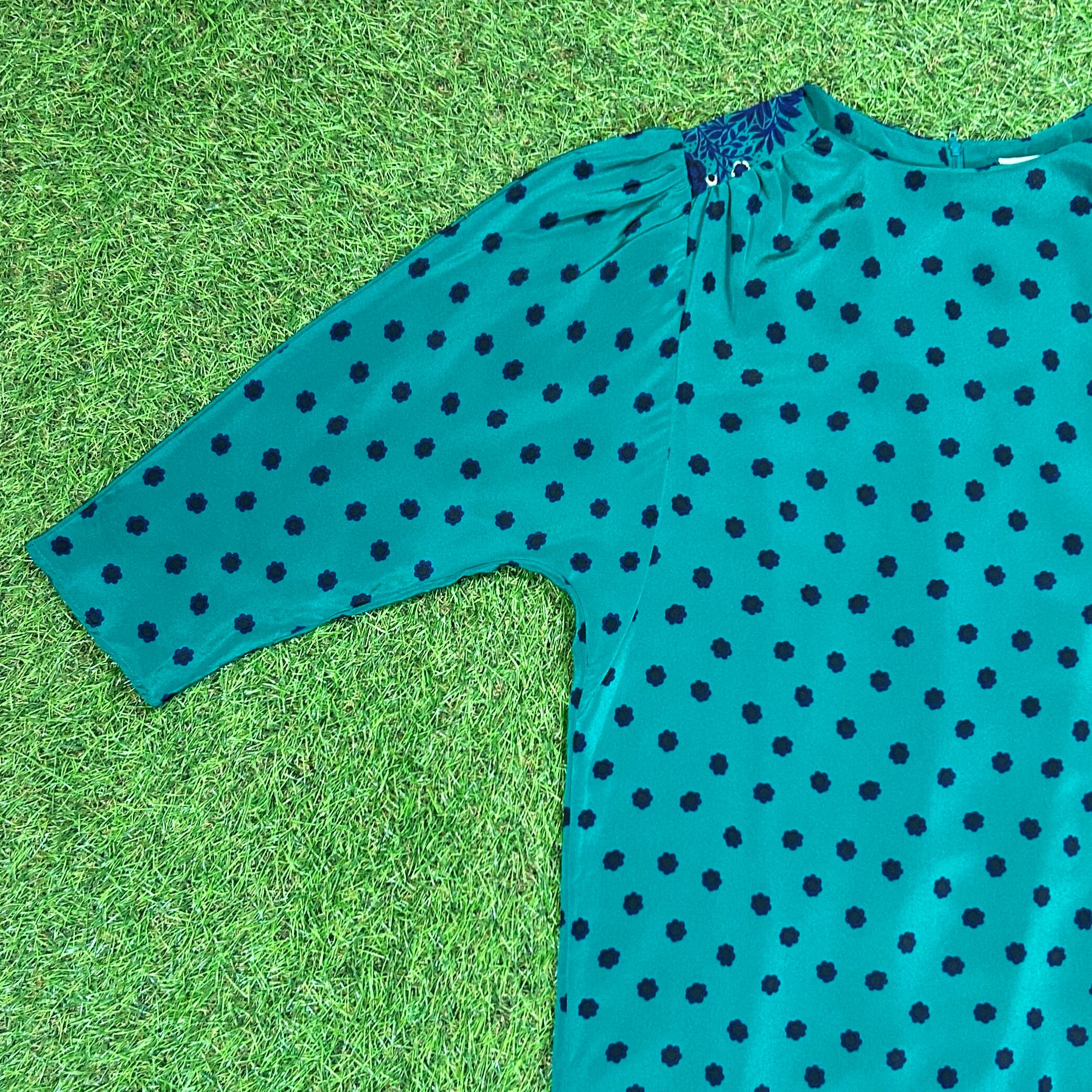 グリーンもカラーにお花が総柄でプリントされていてとっても可愛いです。