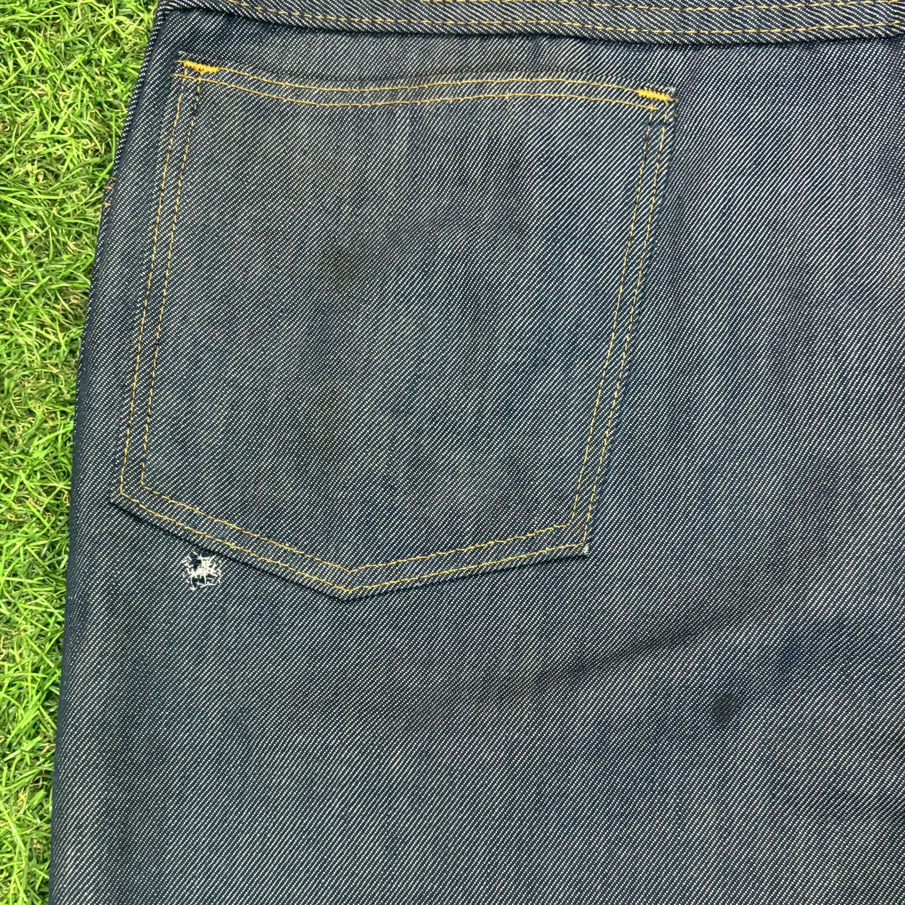 光沢感のあるデニム生地でワークブランドらしく汚れた感じが◎