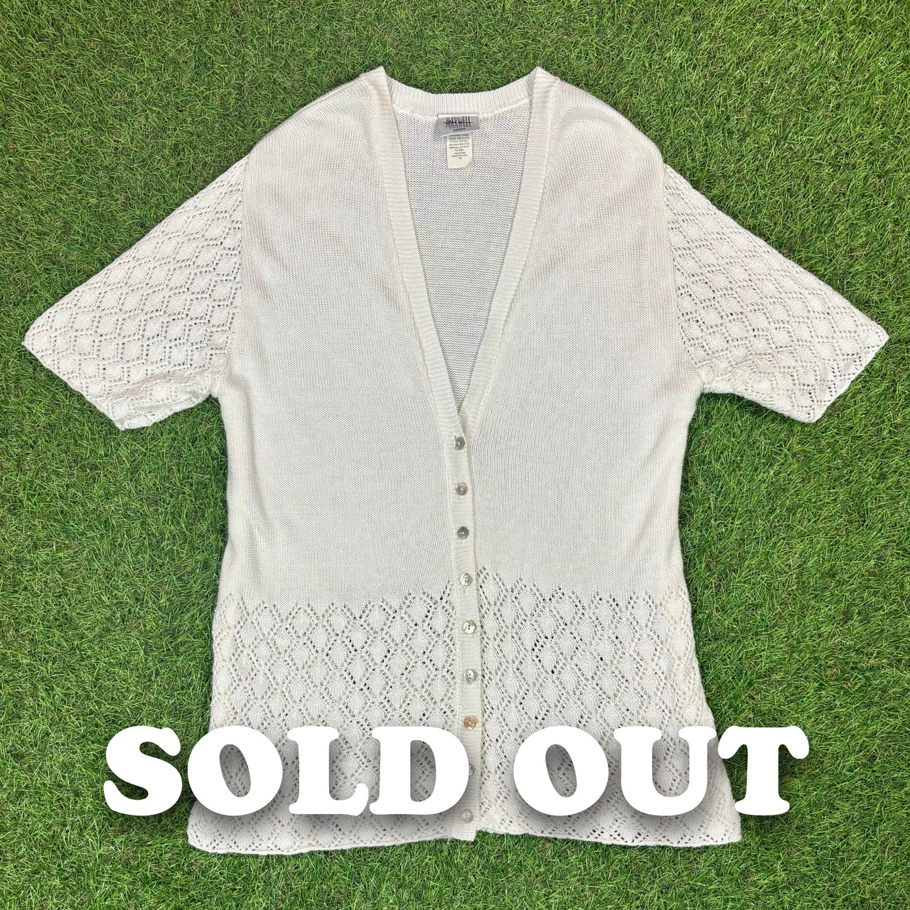 【Lady's】 90s 半袖 デザイン ホワイト ニット カーディガン / Made In USA アメリカ製 Vintage ヴィンテージ 白 サマーニット 大人古着