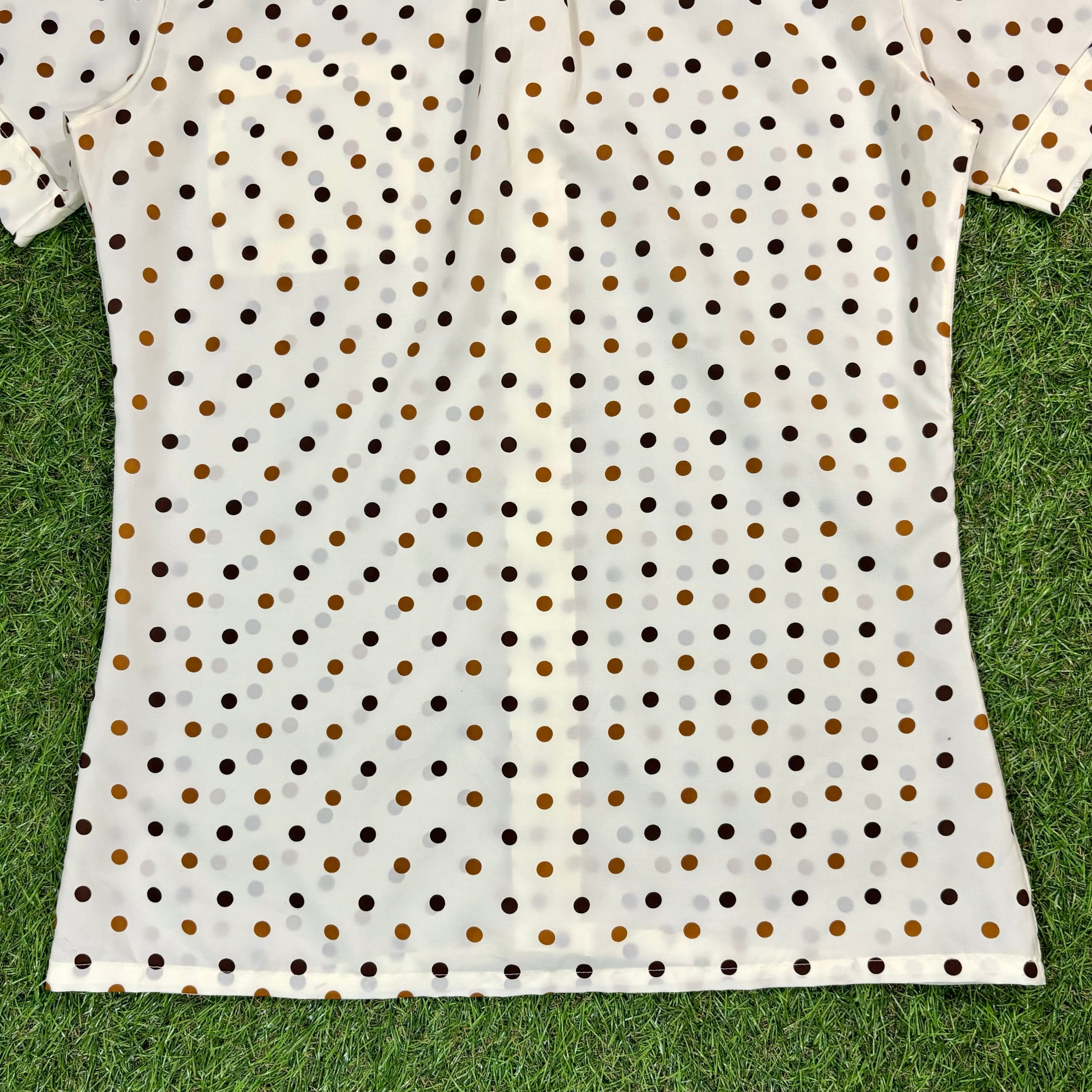 【Men's】 70s アイボリー ドット 総柄 ビッグカラー 半袖 シャツ / Made in CANADA Vintage ヴィンテージ 古着 半袖シャツ 柄シャツ