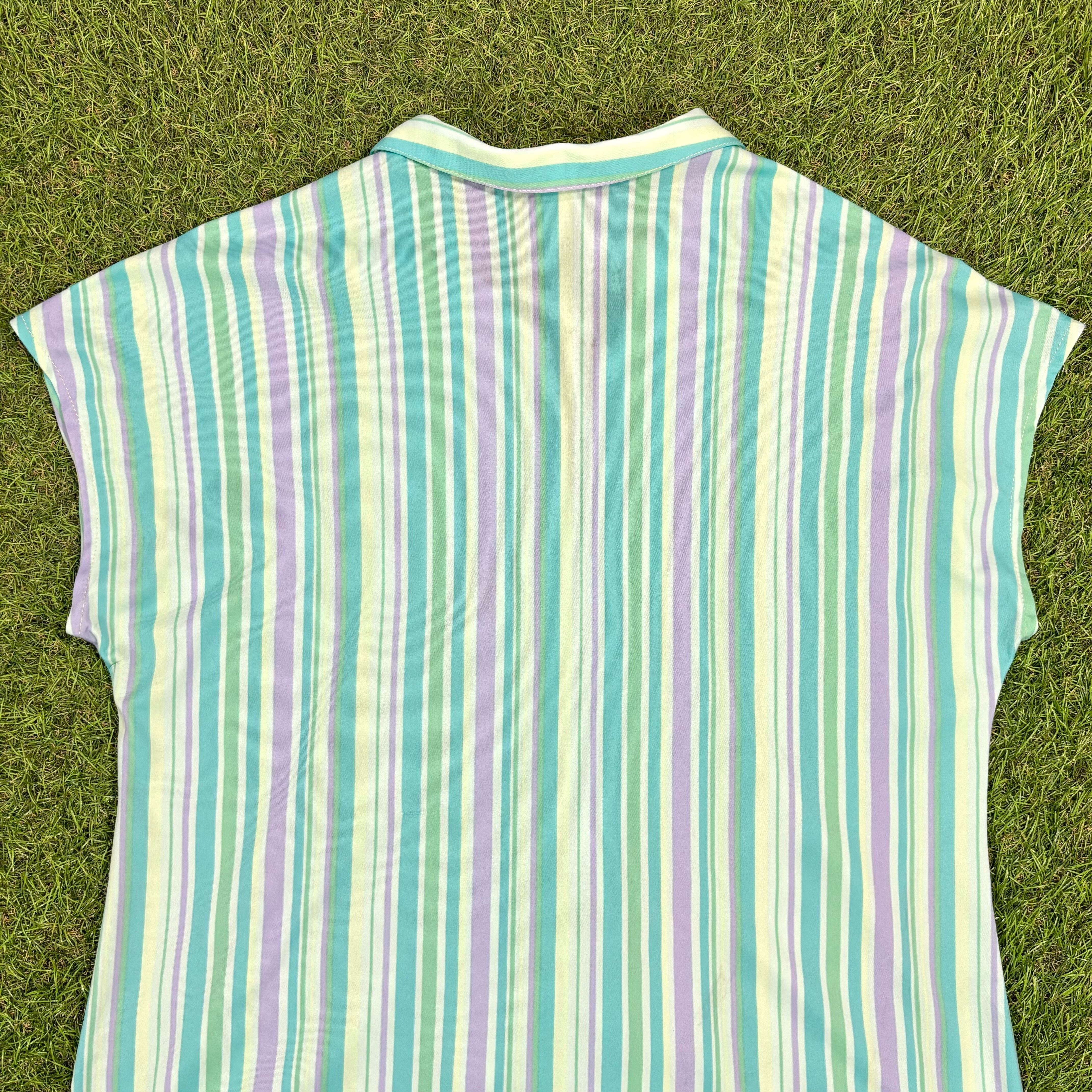 【Lady's】 80s パステルカラー 開襟 フレンチスリーブ シャツ / Vintage ヴィンテージ 古着 半袖 半袖シャツ ポリシャツ