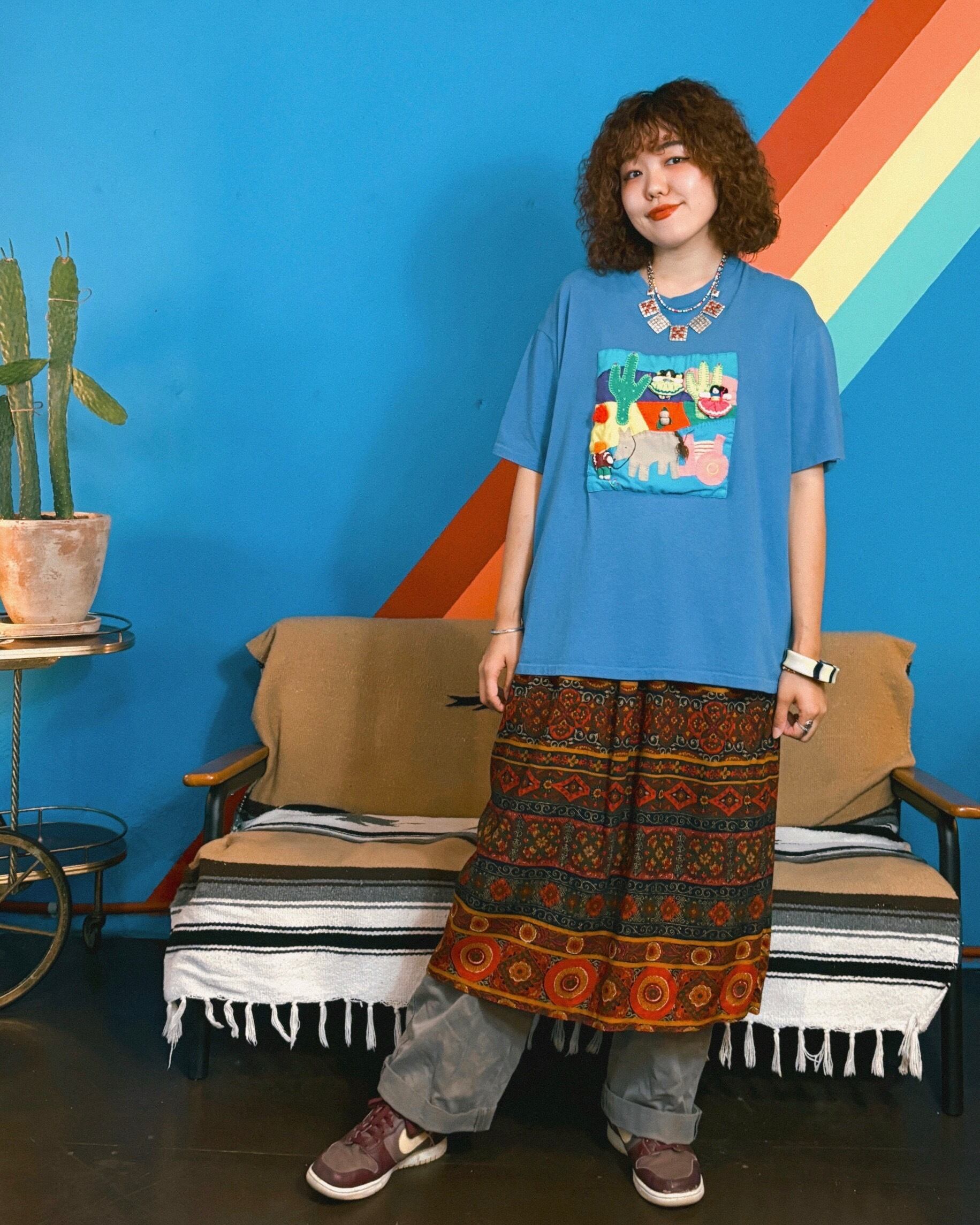 【Lady's】 90s エスニック 総柄 ロングスカート / Made In USA Vintage ヴィンテージ 古着 ボヘミアン ヒッピー スカート ロング