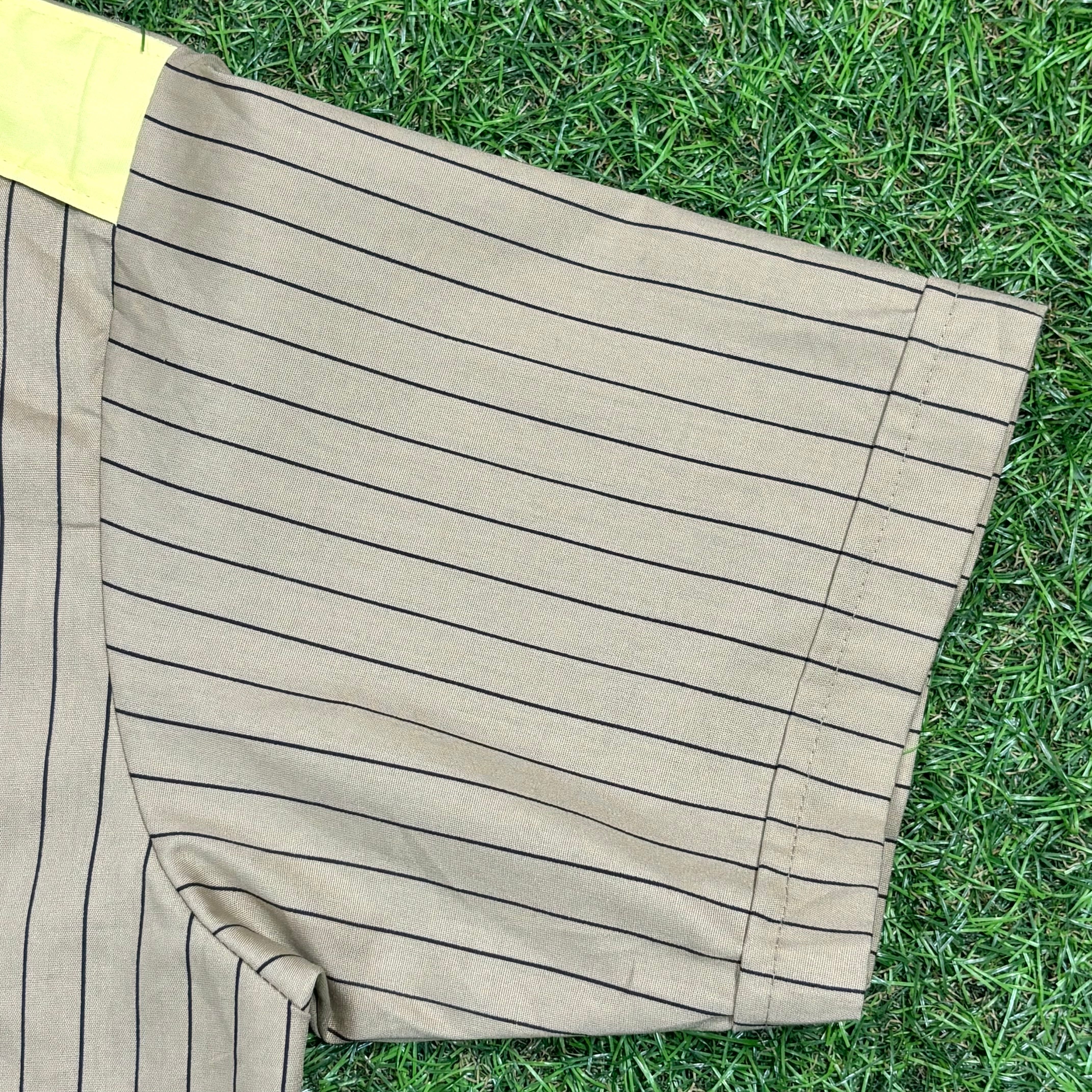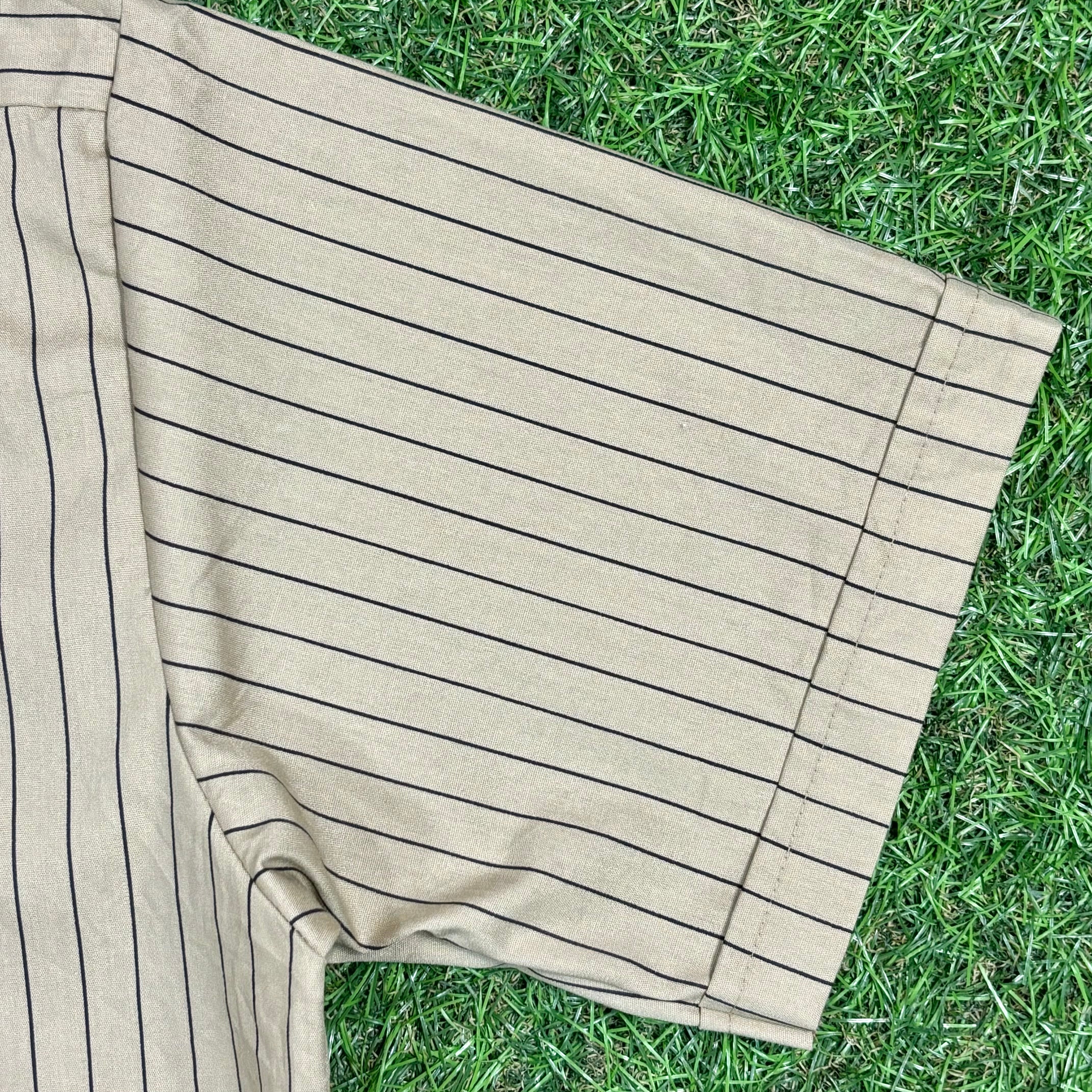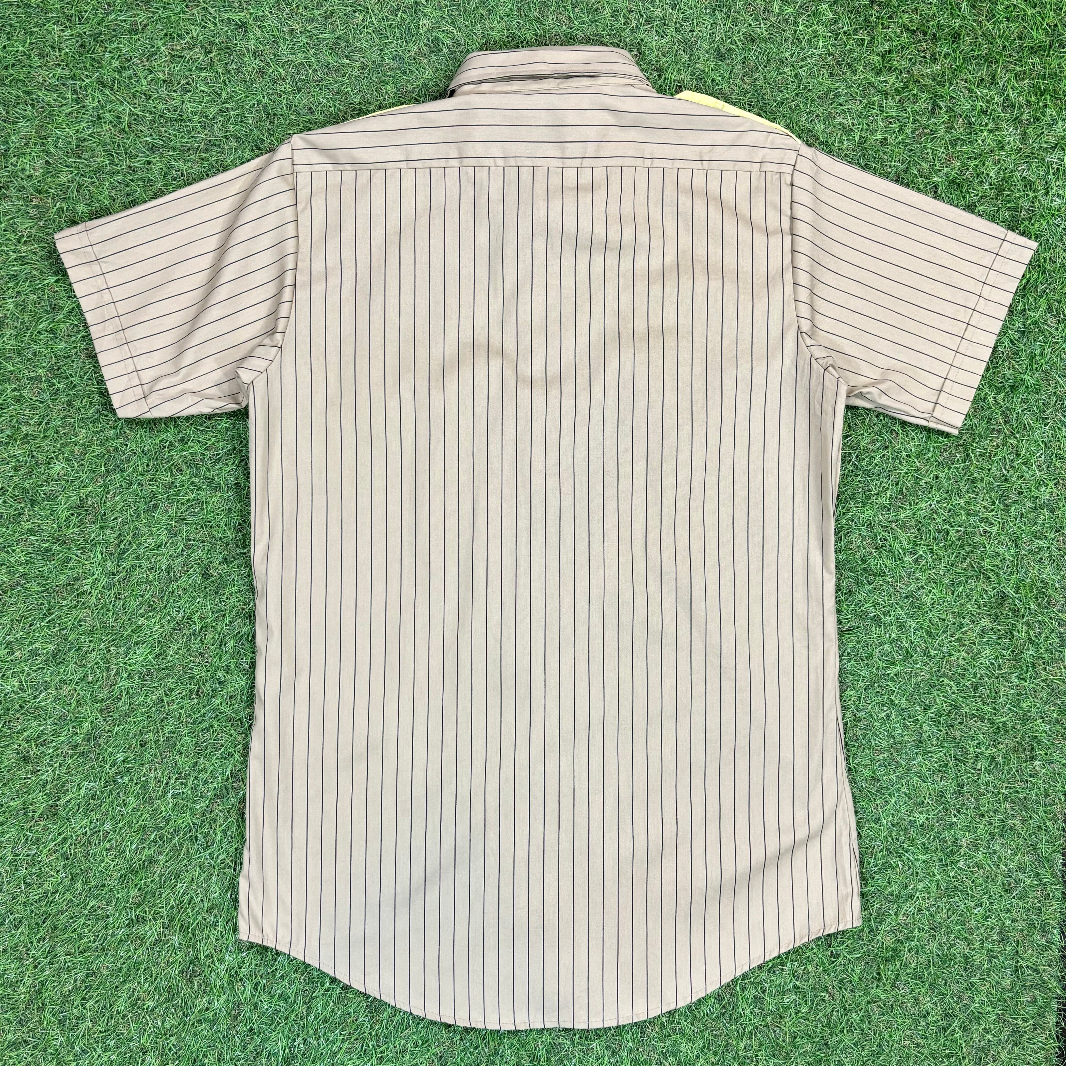 【Men's】 90s ベージュ ストライプ UNITOG ワークシャツ / Made In USA Vintage ヴィンテージ 半袖 シャツ
