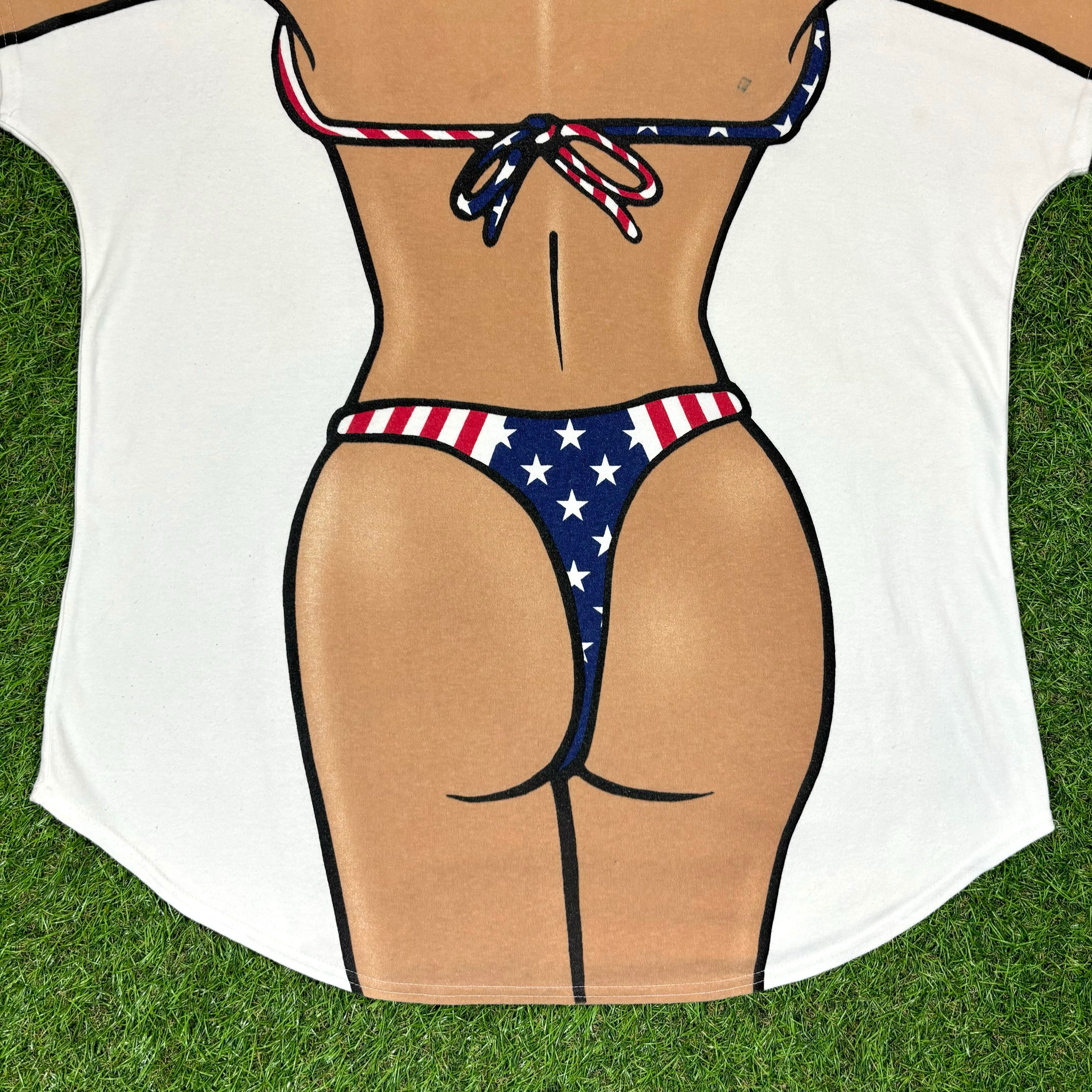 星条旗のビキニを着た女性の体が描かれていてとっても可愛いアイテムです!