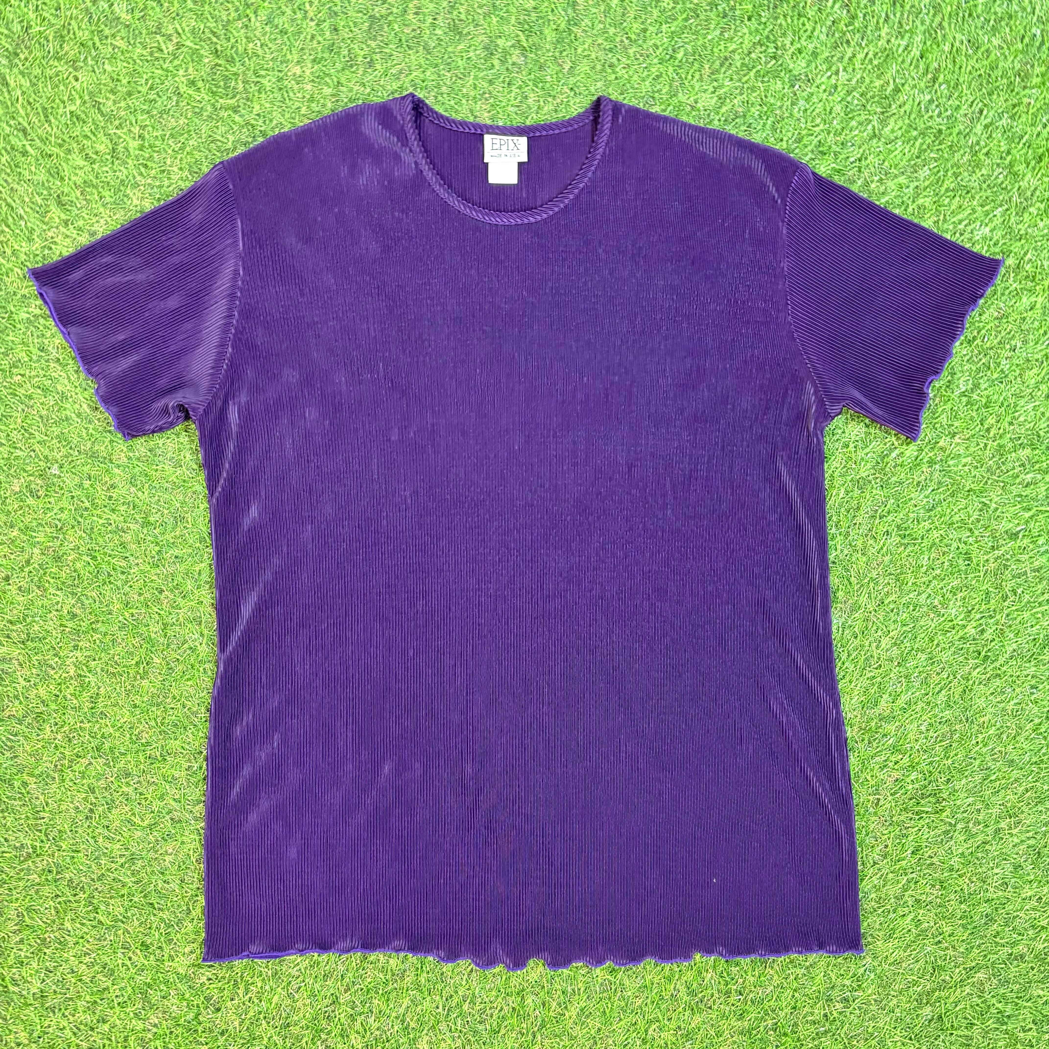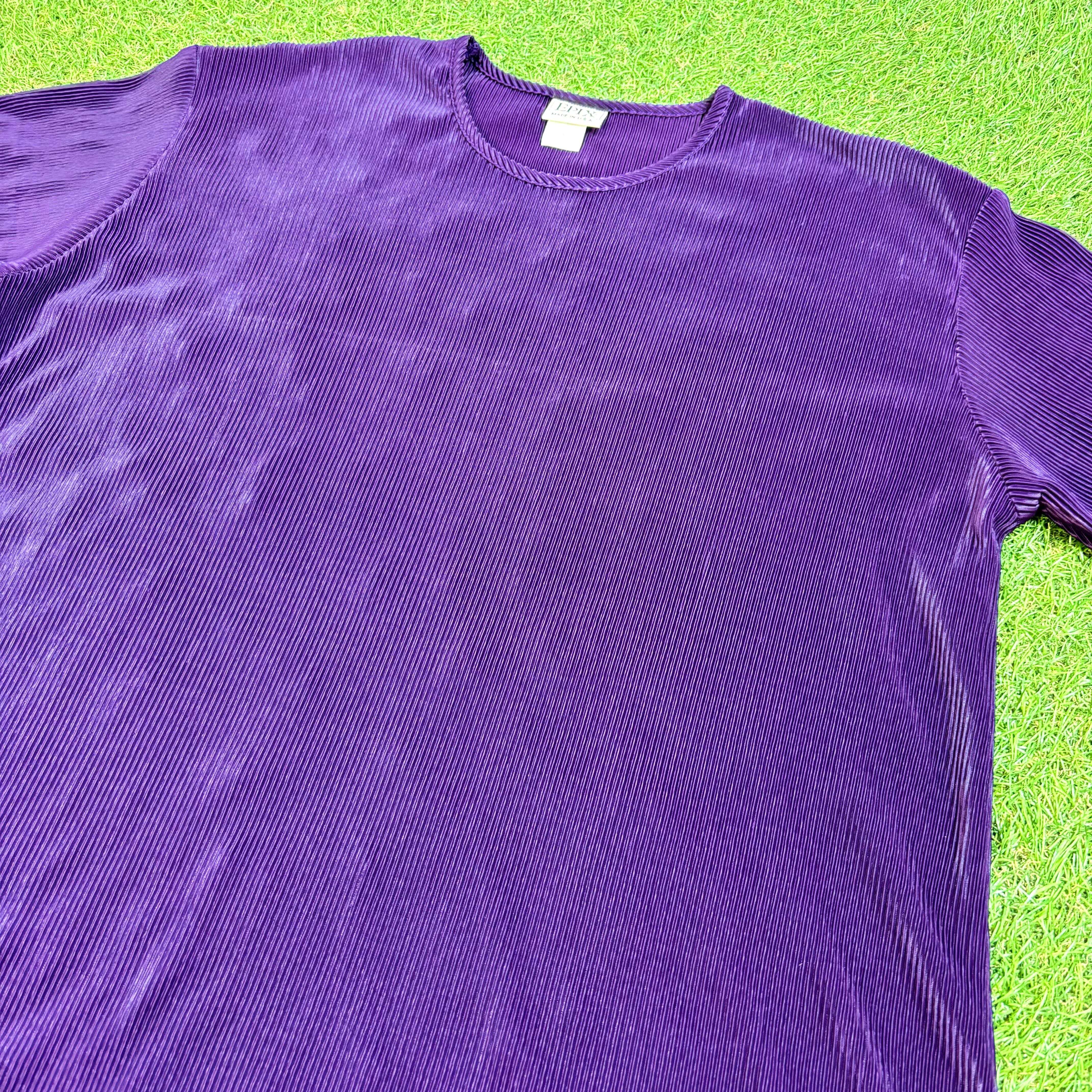 【Lady's】 90s パープル ロング丈 トップス / Made In USA Vintage ヴィンテージ 古着 半袖 カットソー Tシャツ T-Shirts ティーシャツ 大人古着