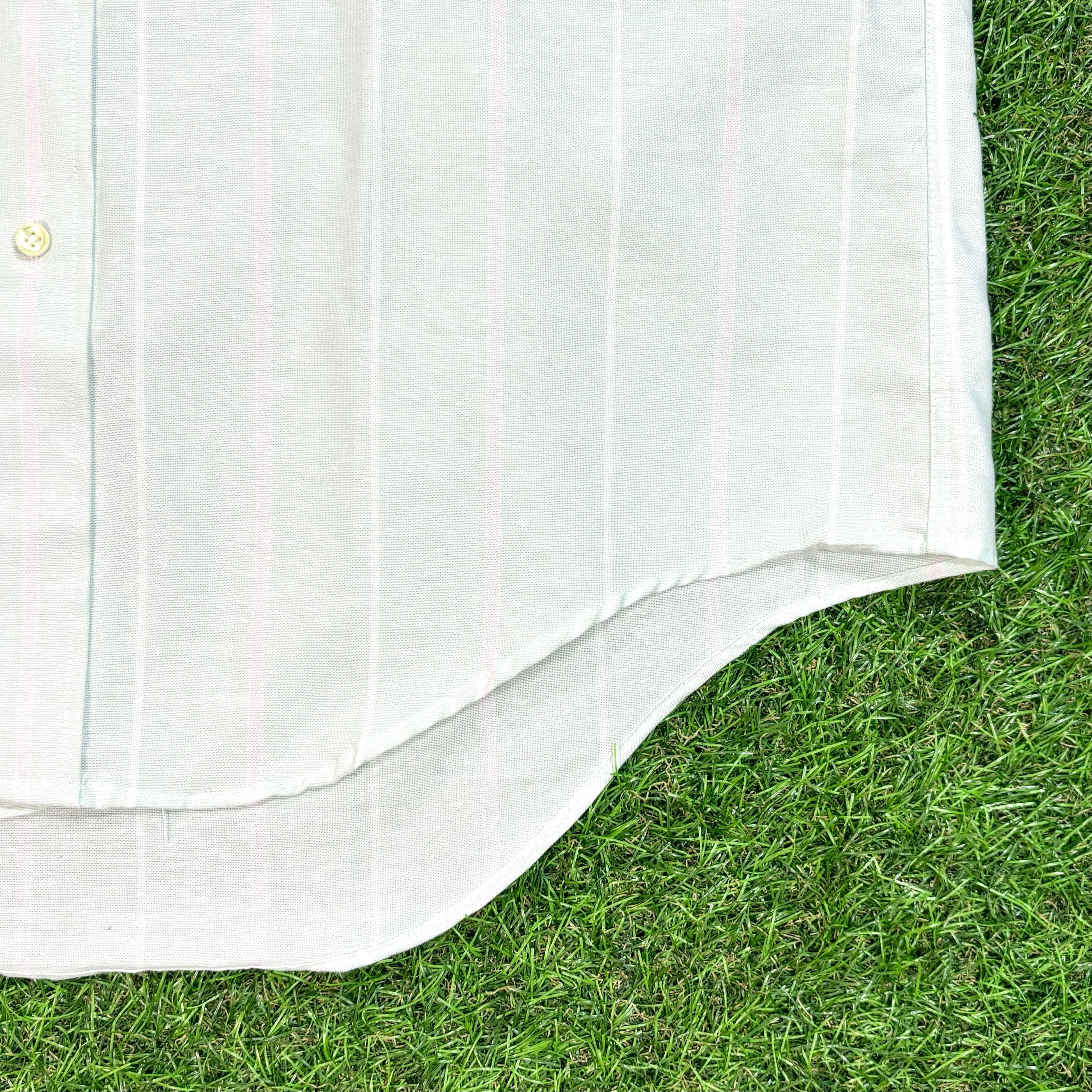 【Men's】 90s ARROW パステルグリーン ストライプ ボタンダウン オックスフォードシャツ / Made In USA Vintage ヴィンテージ 古着 シャツ ライトグリーン 半袖 シャツ 大人古着