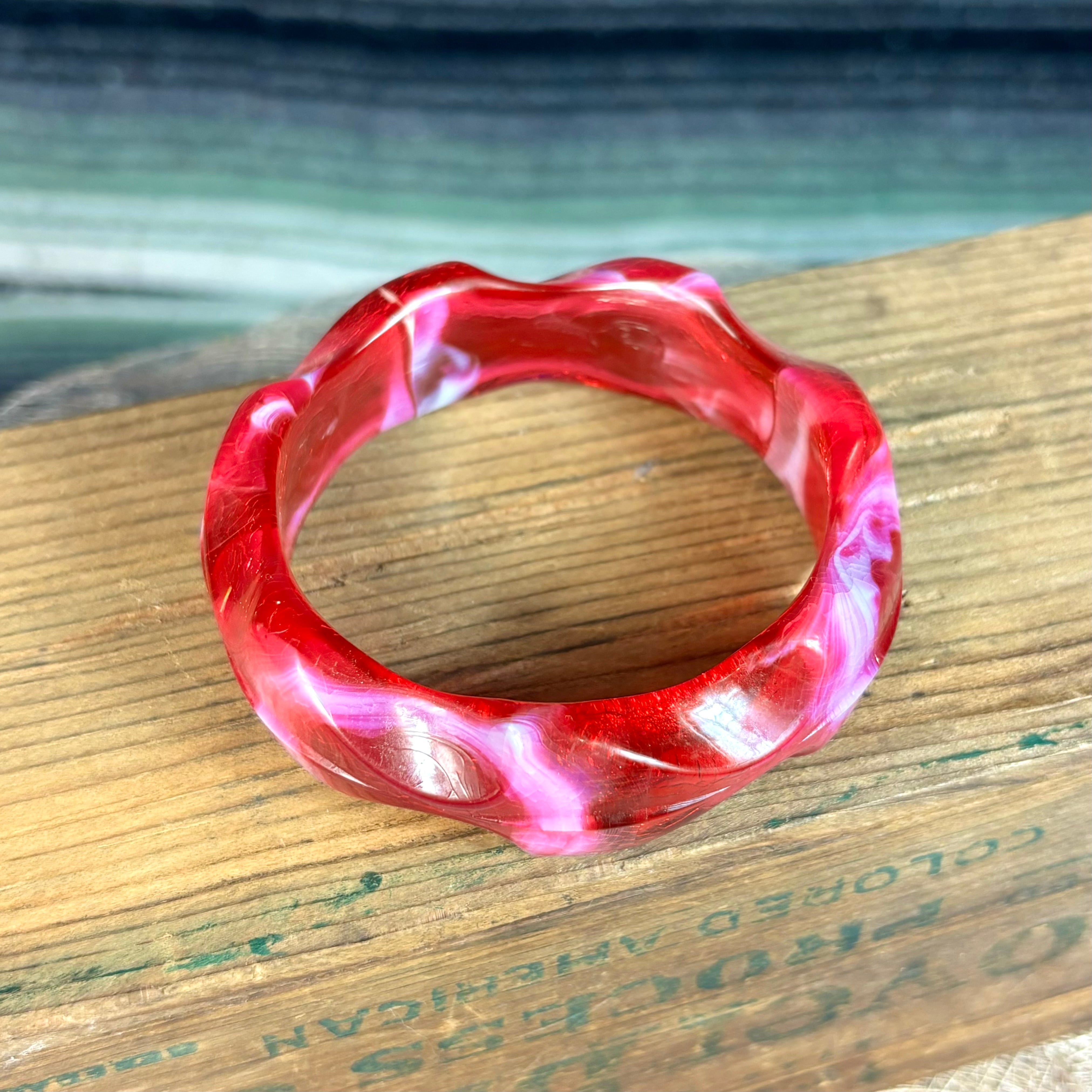 【Unisex】マーブル ピンク ウェーブ デザイン バングル / 古着 Vintage ヴィンテージ ピンク 白 ブレスレット