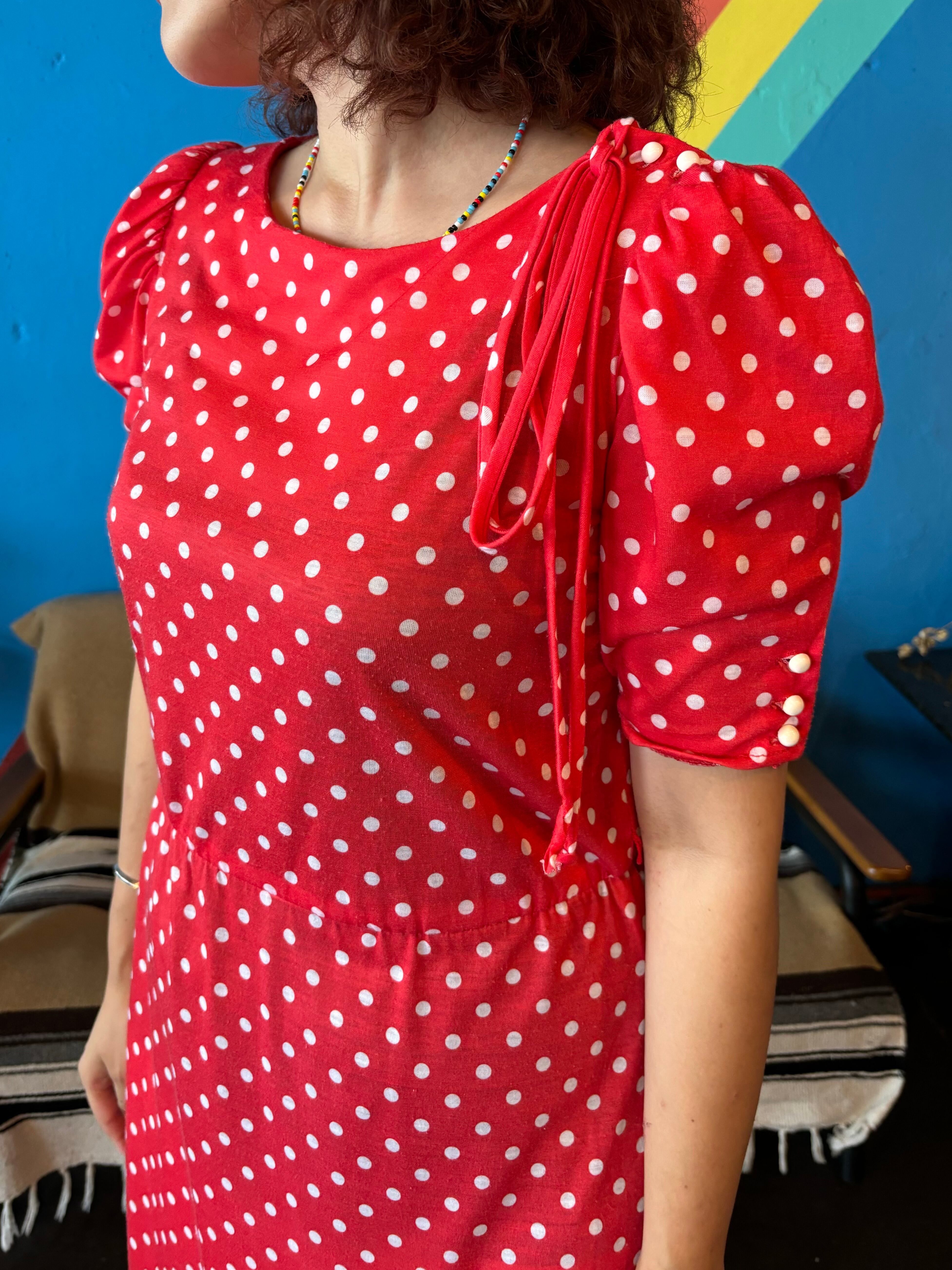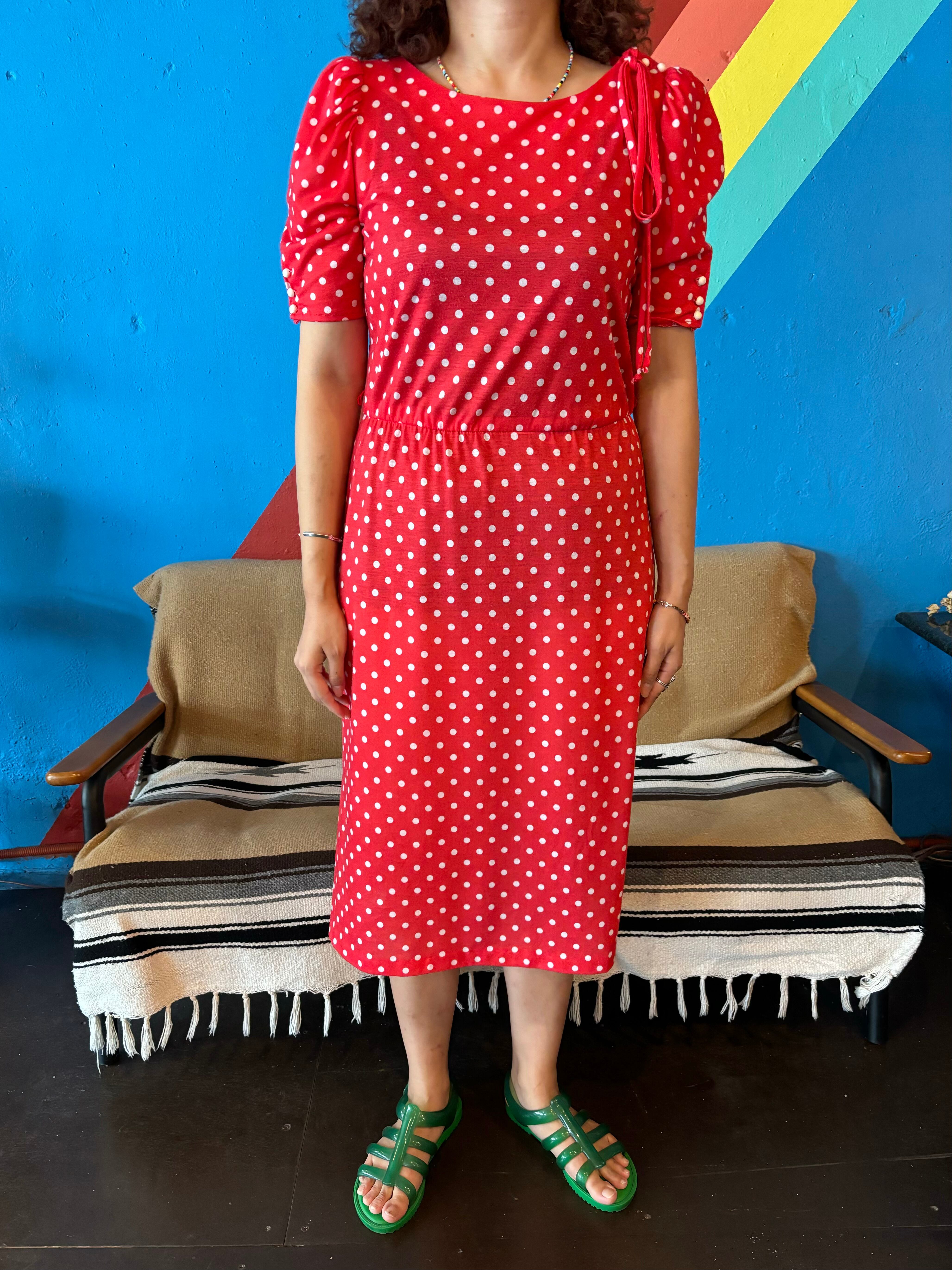 【Lady's】 80s レトロスタイル レッド ドット 半袖 ワンピース / Vintage ヴィンテージ 古着